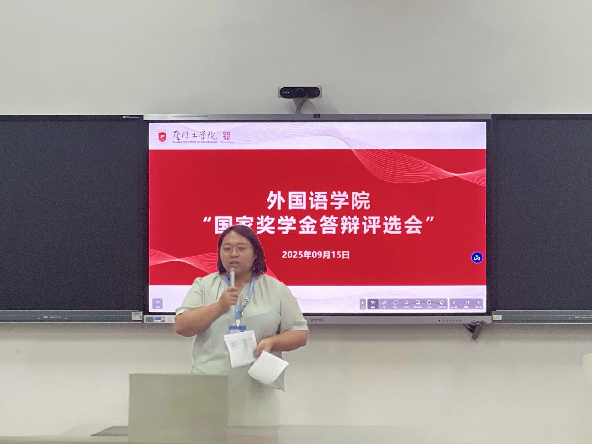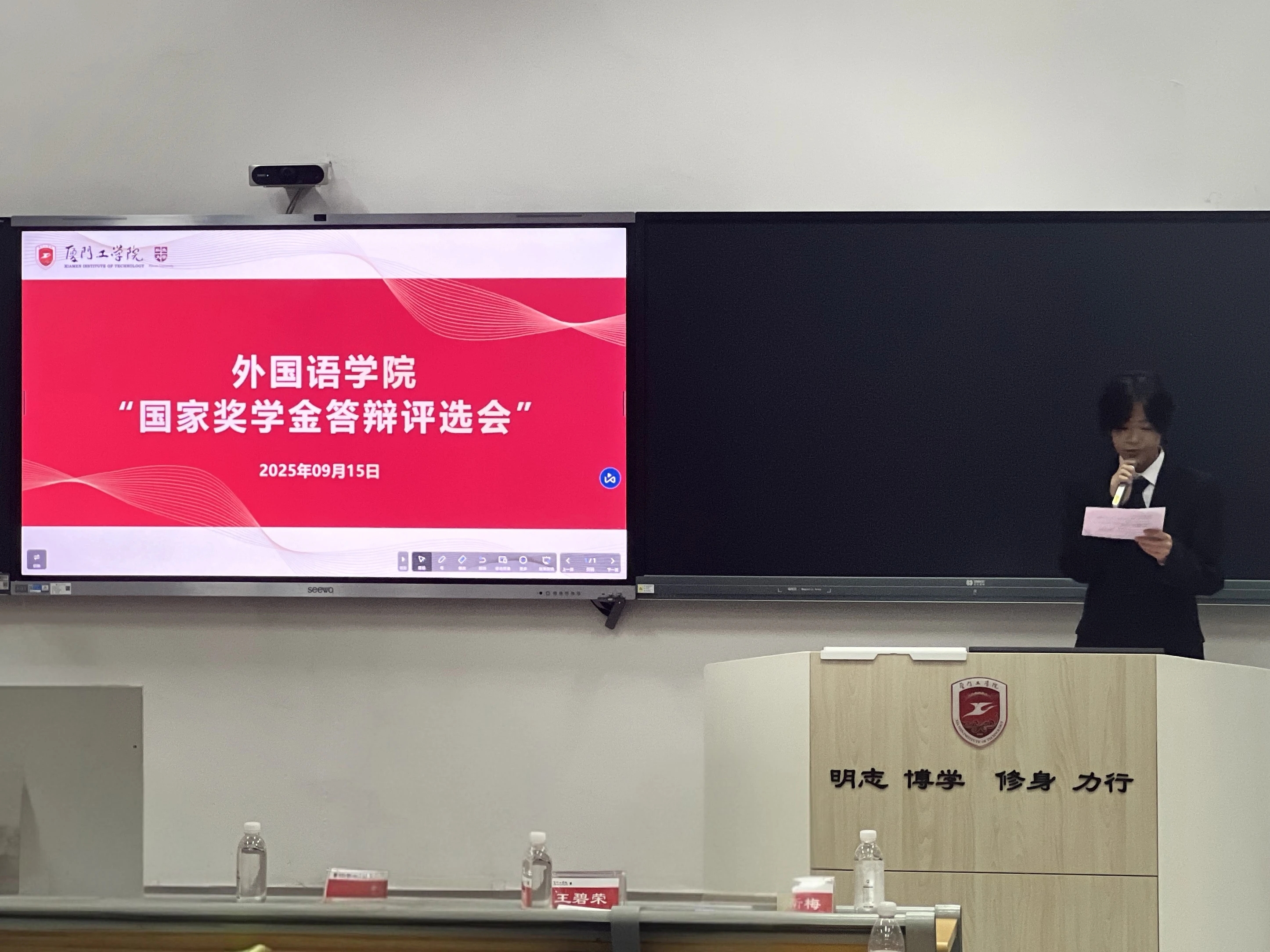 为切实做好外国语学院2024-2025学年国家奖学金及国家励志奖学金的评选工作,进一步发挥我院优秀学生的榜样和引领作用,9月15日,我院在正心大厦325举行国家奖学金答辩评选会。