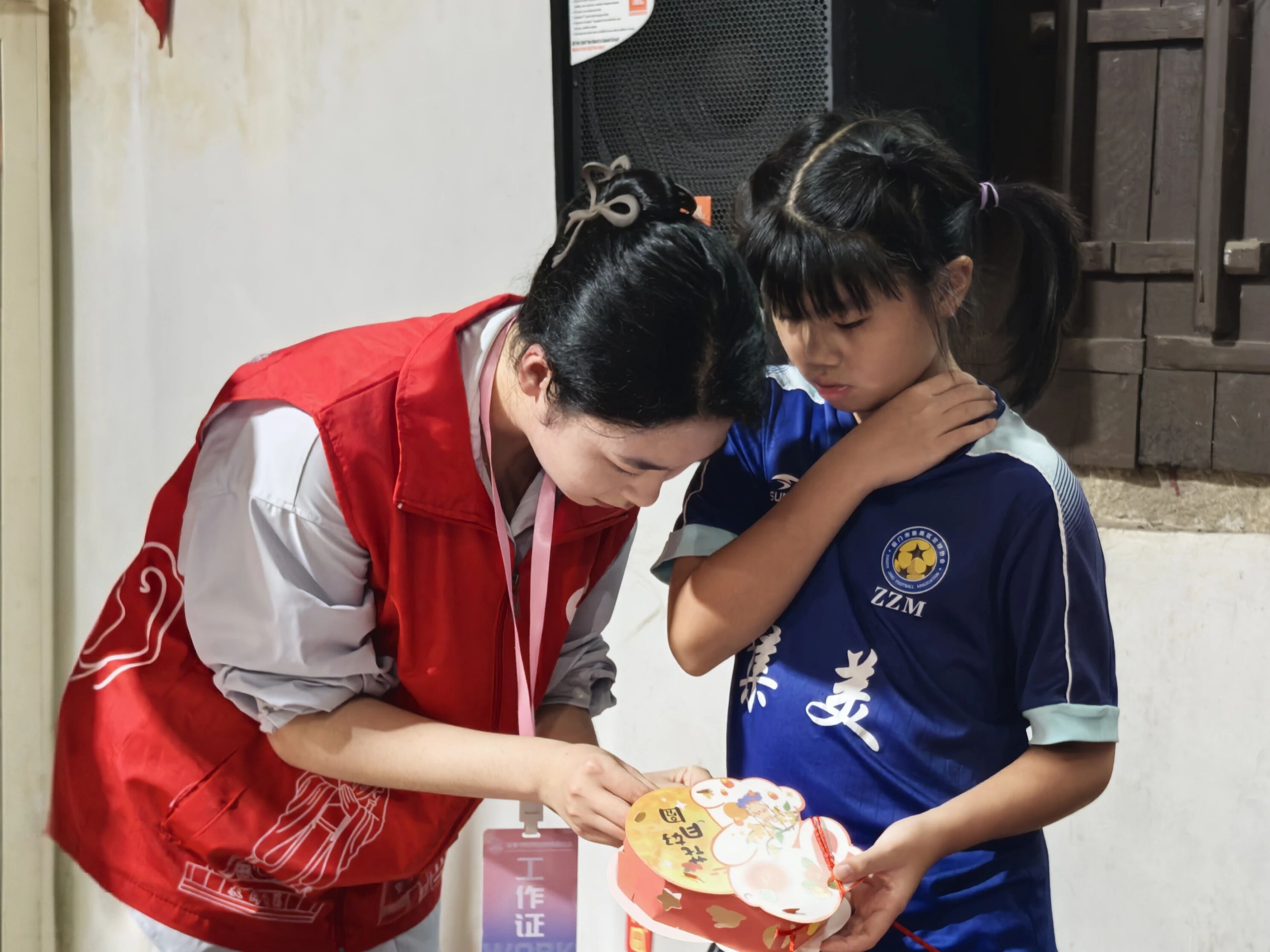 随后的手工制作环节,志愿者带领孩子们投入纸灯笼的制作。从折叠、剪裁到拼接成型,每一步都有志愿者在旁细致指导,孩子们也充分发挥想象力,创作出各具特色的中秋灯笼。当一盏盏灯笼在孩子们手中点亮,温暖的灯光映照出一张张自豪的笑脸,传统技艺的韵味与童真创意在此刻交织成难忘的中秋记忆。