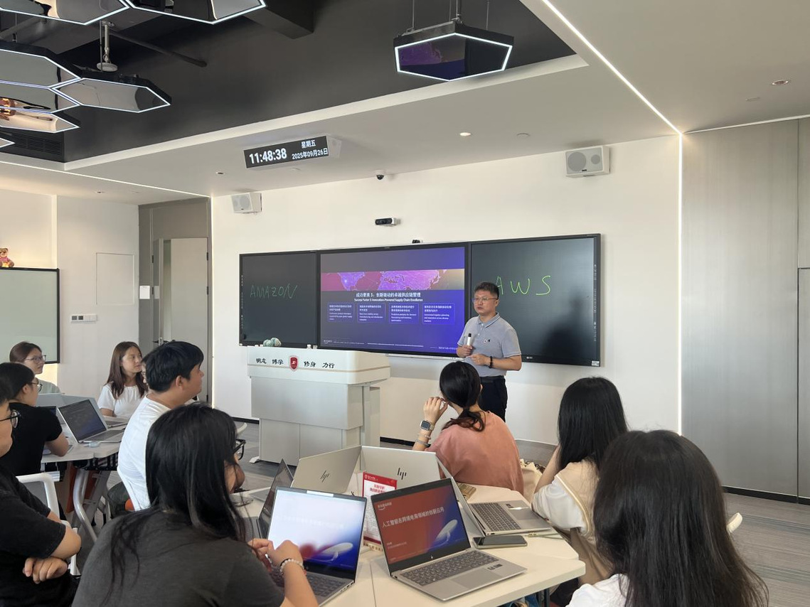 2025年9月26日,外国语学院在怀德大厦403B成功举办第六十九期缘融论坛。本次论坛特邀亚马逊云科技教育行业总监刘东屏博士担任主讲嘉宾,以“人工智能在跨境电商领域的创新应用”为主题,为同学们带来一场聚焦行业实践前沿的深度分享。