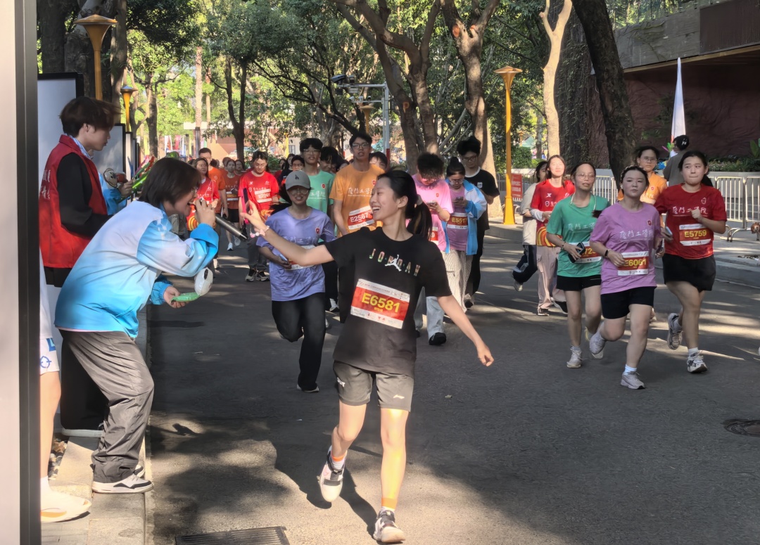 跑道两旁,志愿者同样成为动人风景。外院师生以铿锵的助威声,应和着激昂擂鼓,将力量与信念传递给每一位跑者。