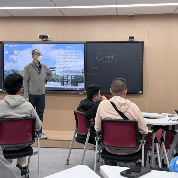 11月18日晚,厚德109教室被欢笑声填满,以”Gaming”为主题的英语角活动在此热闹开启。外教Andy以“击鼓传花”拉开序幕,同学们写下中国热门游戏,从本土爆款到全球顶流,大家的推荐里竟和Andy分享的美国热门游戏撞上——“Genshin Impact”成为东西方共同的“心头好”!Andy随即用生动的肢体语言和黑板简笔画,趣味解读起这些游戏的玩法与魅力。