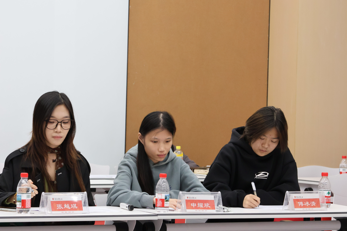 本次比赛特邀申耀欣、张越琪、傅冰清担任评委。学院办公室副主任吕思琪老师、辅导员郭爽老师亦到场观赛,与同学们一同见证精彩。
