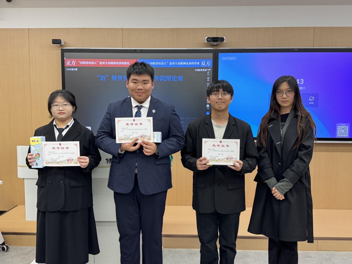 12月11日,总决赛于厚德416教室拉开战幕。正反方就“‘内娱没有活人’现象是对大众精神需求的满足还是背离”展开终极对决。双方从定义厘清到论证推进,辩手们各展其才,逻辑清晰、论据有力。经过激烈交锋,24日语1班凭借对辩题的深刻理解与扎实的场上表现,最终摘得桂冠。