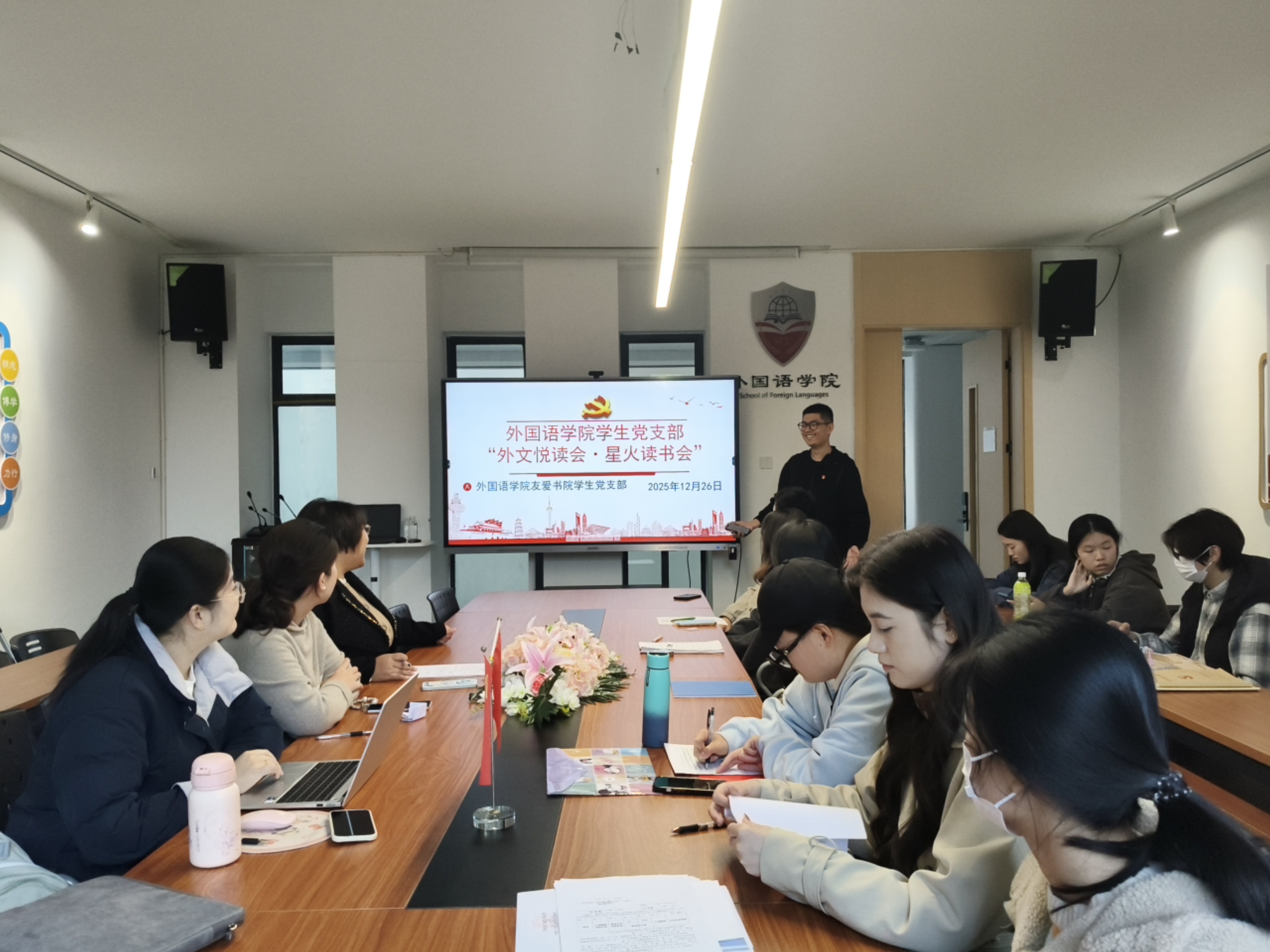 为深化理论学习,传承红色基因,2025年12月26日下午3点,厦门工学院外国语学院友爱书院学生党支部组织开展“外文悦读会·星火读书会”活动,全体党员参加活动,围绕《毛泽东选集》、《习近平与大学生朋友们》以及《红星照耀中国》三本书籍分享读书感悟,开展学习交流,在字里行间感悟思想伟力,在分享研讨中凝聚青春共识。