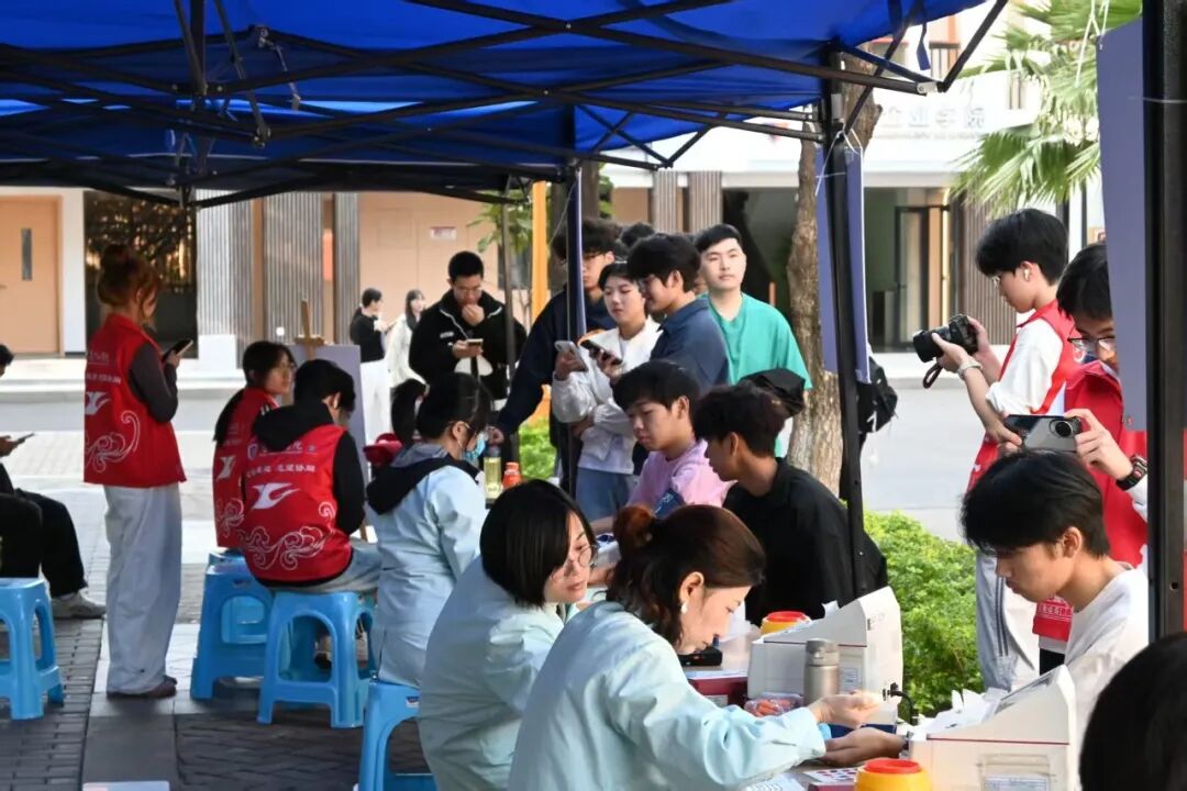初次献血的同学在医护人员轻声细语的安抚下逐渐放松,顺利完成人生中第一次爱心捐献;有经验的学长学姐们则主动分享献血心得与注意事项,用亲身经历为身边同学加油鼓劲。