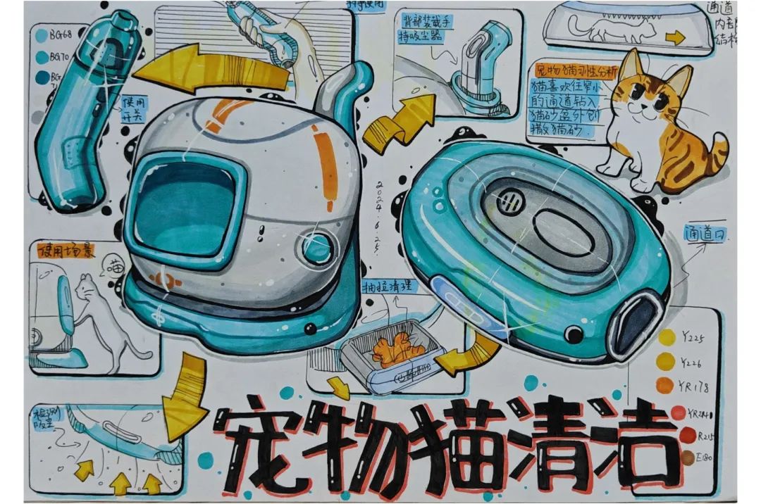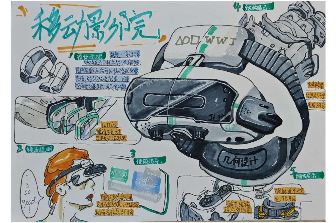 另外,后续进阶学习还要帮助学生学会将抽象思维转化具体形象,引入“具象化”思维训练,通过实物拆解速写、用户场景故事板等,帮助学员建立产品功能与视觉表现的关联性,同时帮助学生建立审美体系,通过“风格化案例拆解+色彩理论练习”,引导学员批判性分析设计趋势,并结合命题系列化设计,在实践中逐步形成个人视觉语言。