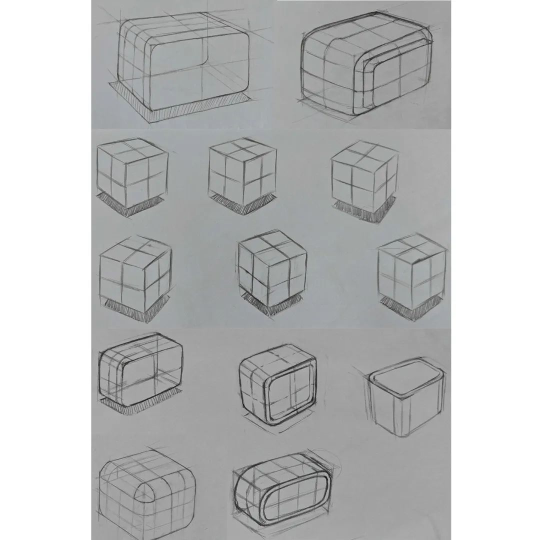 其次,再进阶到透视练习,着重让学生理解透视原理,讲解手绘过程中会遇到的透视问题及解决方法,再开始学习形态的构建必备要素,进行倒角等训练。