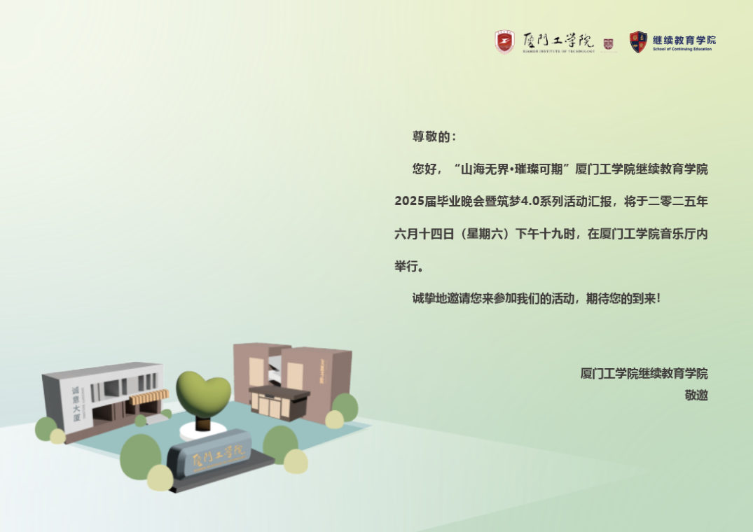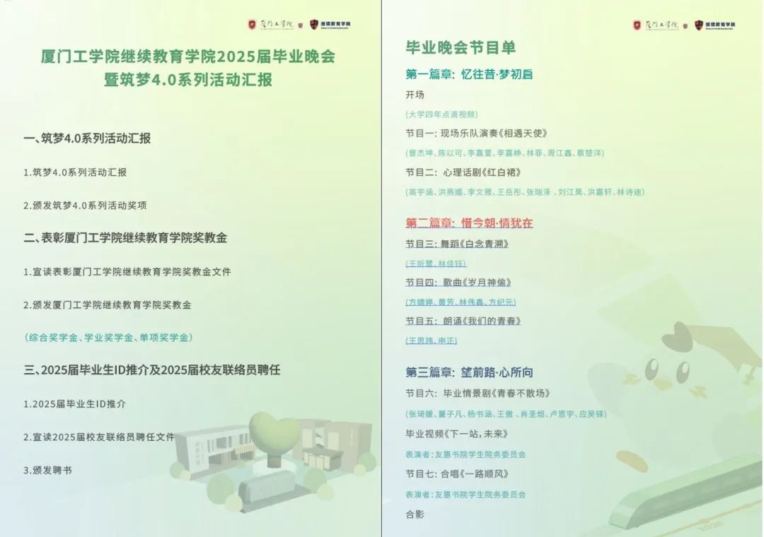 随着厦门工学院继续教育学院2025年毕业晚会的圆满落幕,相信大家都被本次活动的主视觉设计深深打动。那些承载着青春记忆的创意元素,不仅定格了这个夏天的美好瞬间,更成为了我们共同的珍贵回忆。本次,就让我们一同回顾这些精彩设计的创作历程,感受背后蕴含的创意灵感与真挚情感。