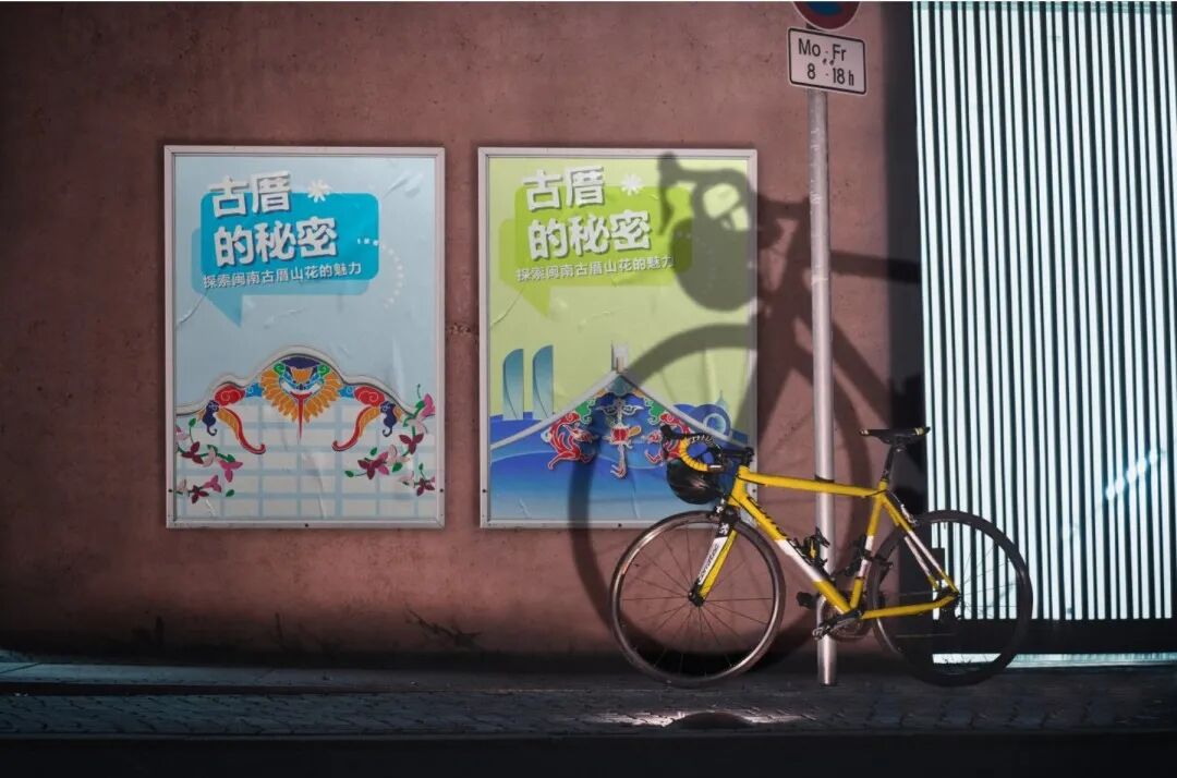 第三张海报围绕厦门标志性的花鸟树元素进行创作,主体内容取材自然。为突出自然主题,我采用镂空设计使自然景色能够直接融入墙体画面,增强画面与实际环境的互动性。第三张海报的图片为实拍演示效果展示了最终的视觉呈现。