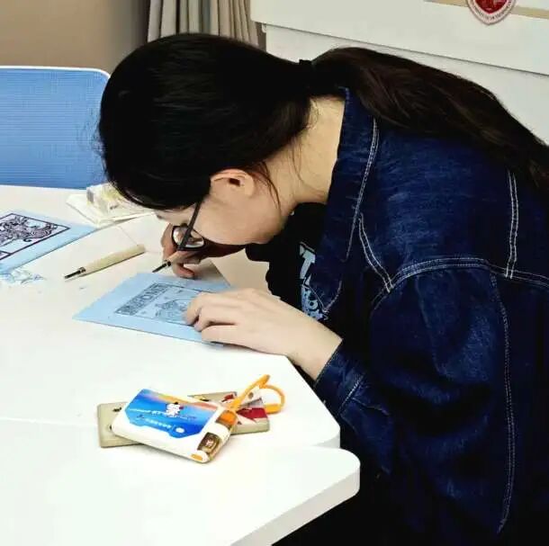 在朱纪芸老师的专业指导下,同学们运用所学知识,积极利用AIGC技术生成了各具特色的版画线稿。这些线稿题材新颖、寓意积极,或承载着美好的祝福,展现出丰富的创造力。随后,同学们熟练地将线稿转印至刻板,并依照教学所授的规范流程,逐步进入刻印实操阶段,顺利完成了从数字设计到实物制作的关键转换。