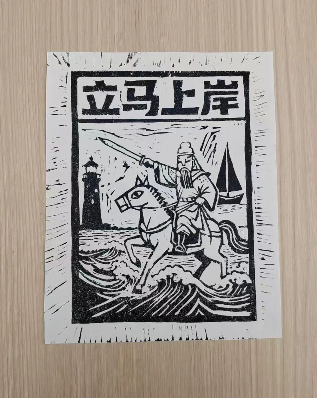 时间在刀锋与木版间悄然流转,伴随着淡淡的油墨香气,在这个充实的午后,我们共同体验了从AIGC线稿生成到刻版印刷的完整创作历程。在此衷心感谢每一位成员的全身心投入,同时期待我们下次再度相聚,继续在艺术的道路上共同探索。