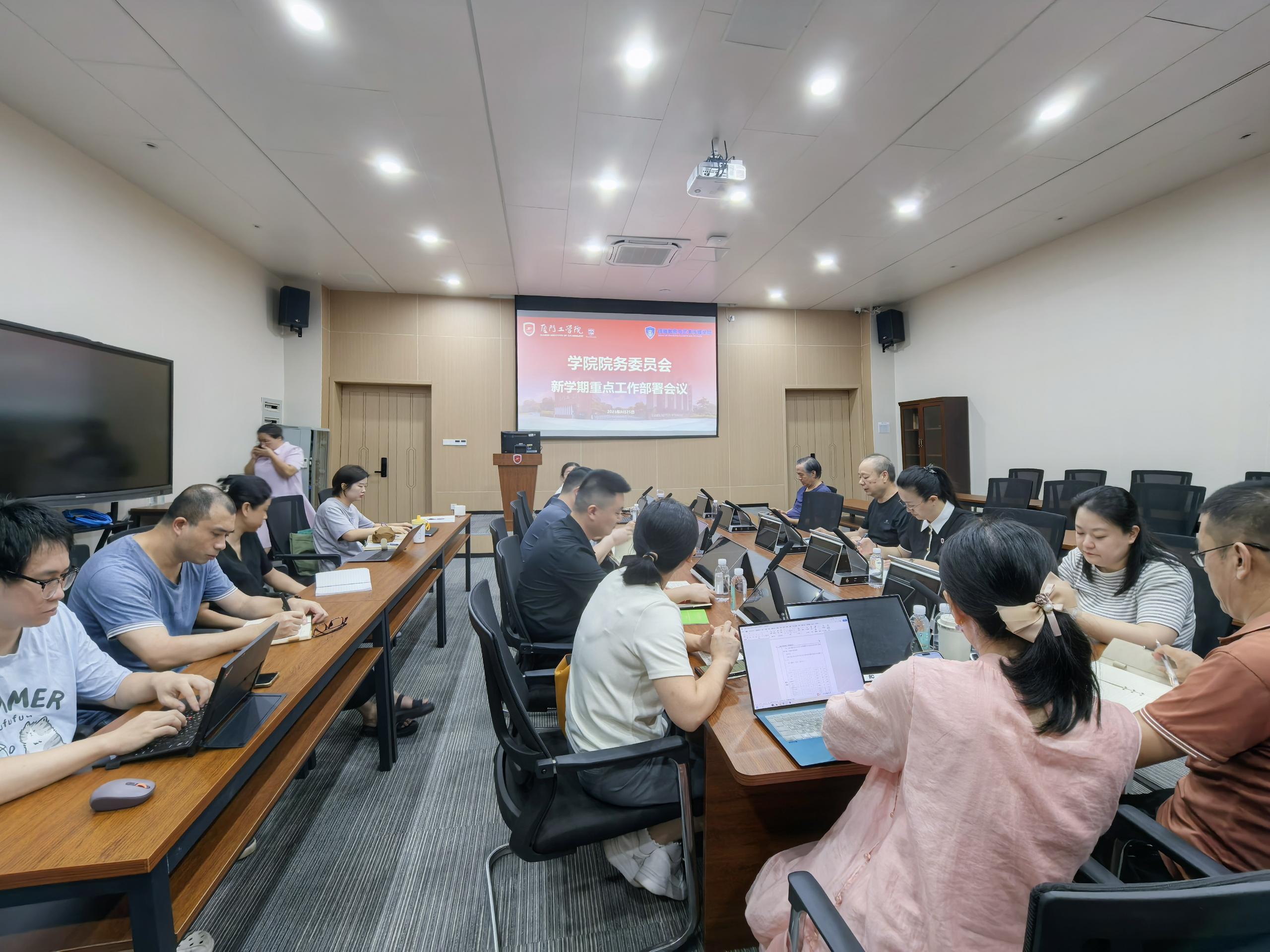 2025 年 8 月 25 日,博雅教育与艺术传媒学院于博雅大厦304植艺厅组织开展新学期工作部署会议,会议以 “明确核心任务、压实工作责任” 为核心目标,全面梳理开学初期筹备进展,系统部署新学期重点工作,为学院工作高质量开局、稳步推进筑牢基础,学院领导及各课程组主任参与会议。