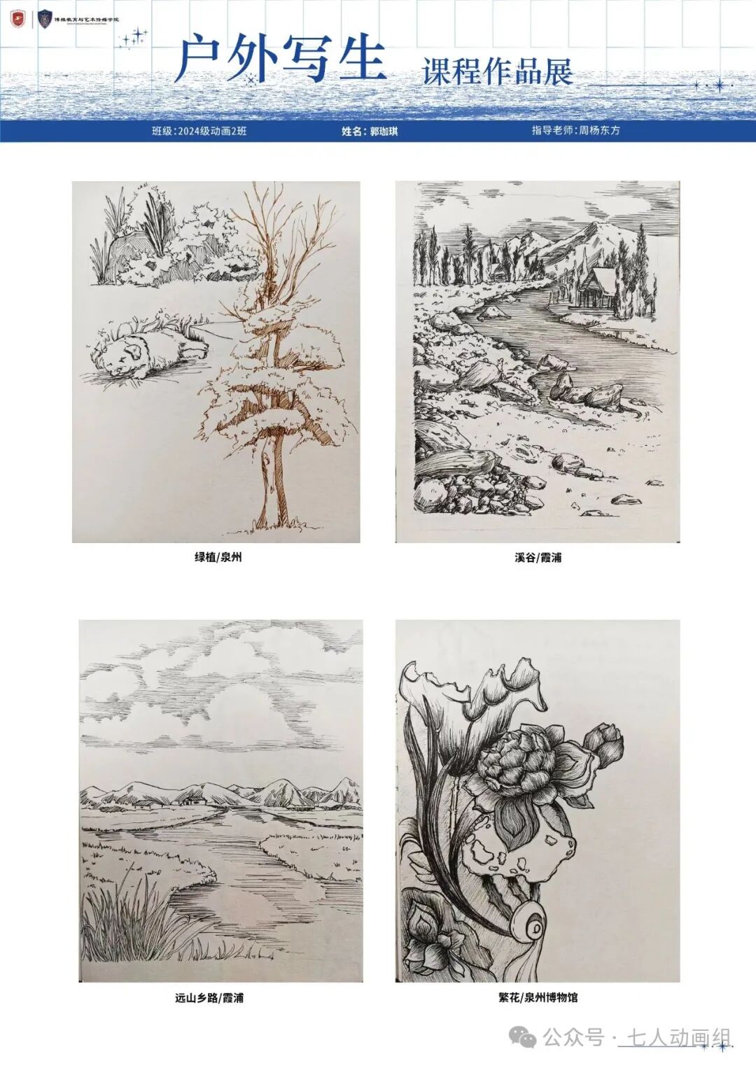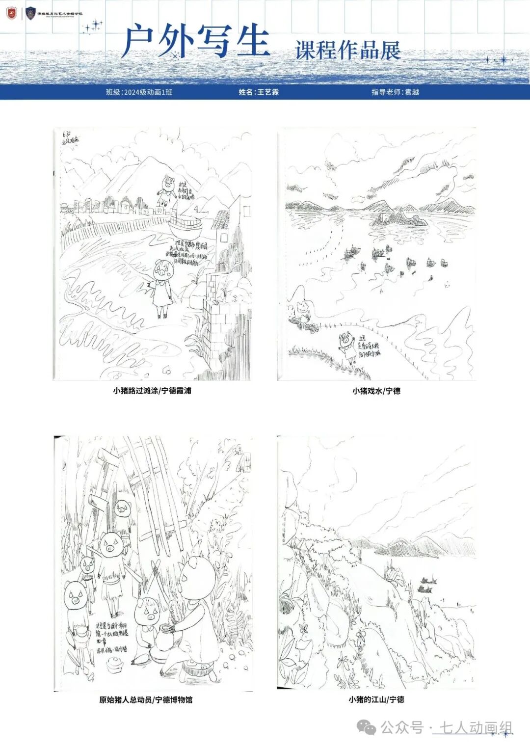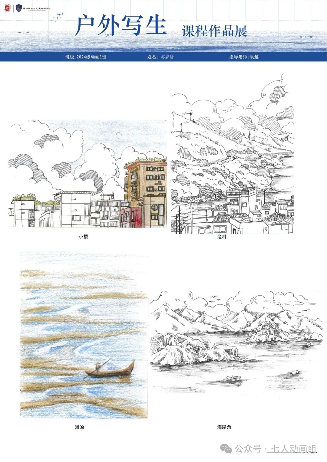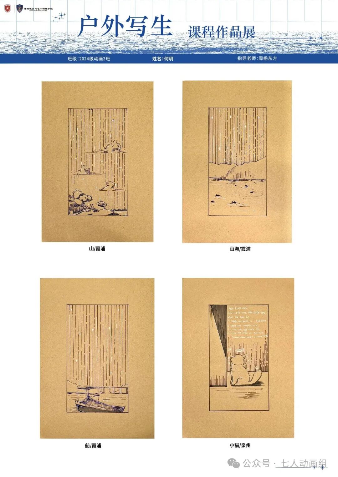 本次户外写生课地点为福州、宁德、泉州。人数:动画专业学生59人,老师2人。这是一次很有意义的写生活动,该门课程让学生走出教室,在户外提升了观察力和绘画技巧,锻炼了应变与创造力。学生作品整体水平显著提高,展现独特视角与创新手法,还拓展了文化视野。同时也拉近了老师与学生的距离,外出写生不仅要做学生的专业老师,还要做学生的生活老师;学生拉近了和专业的距离,强化专业基础能力培养。