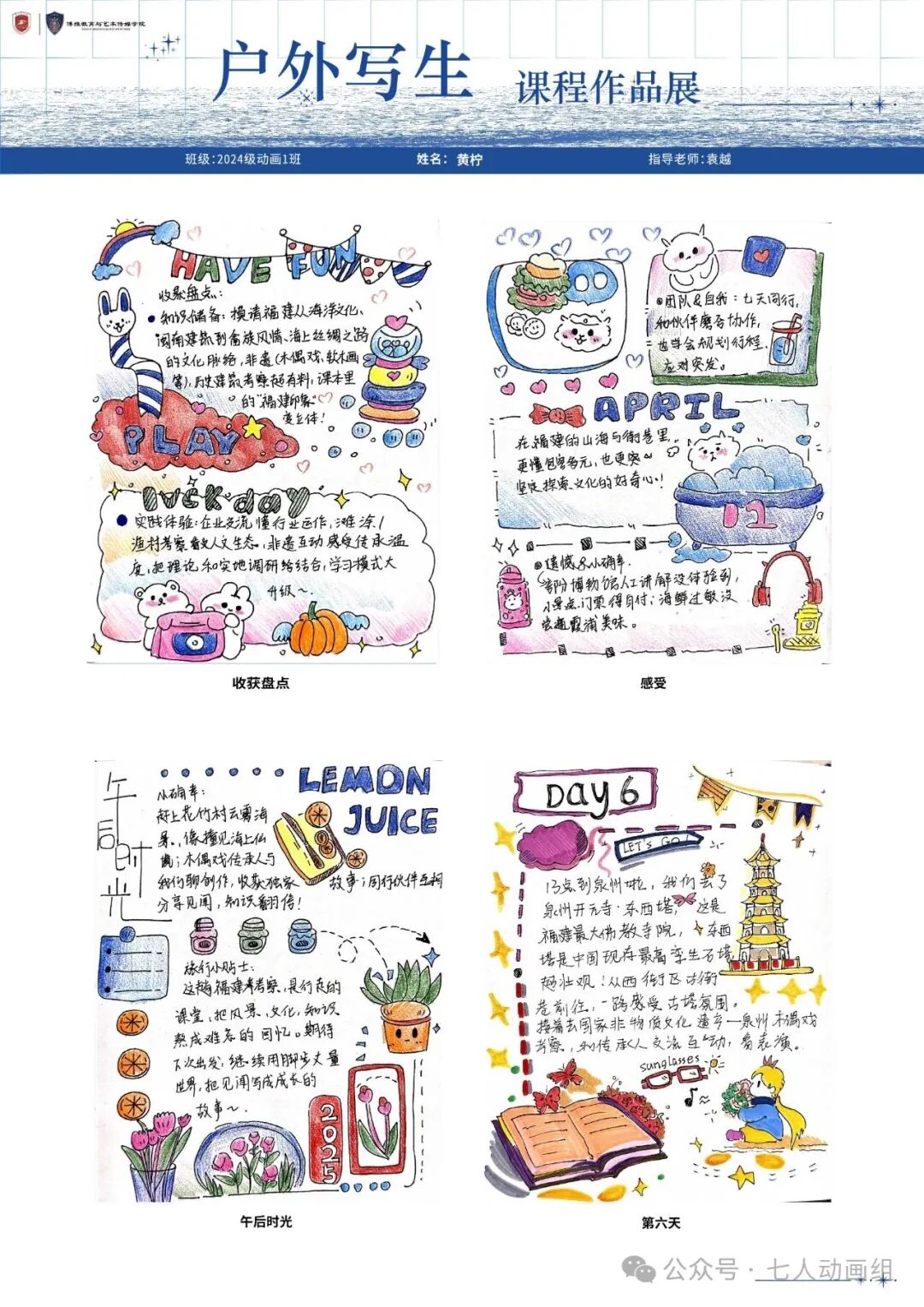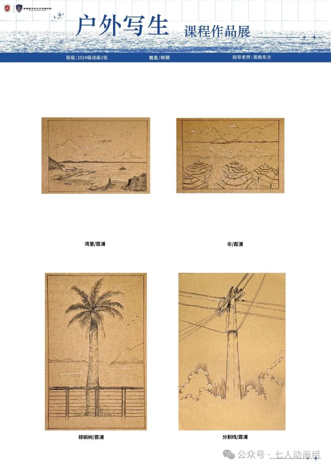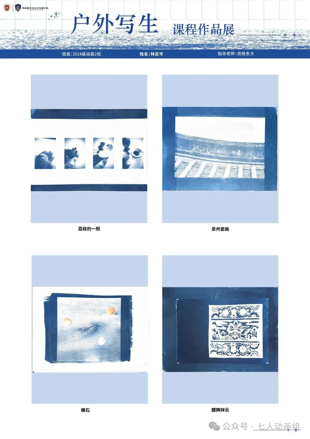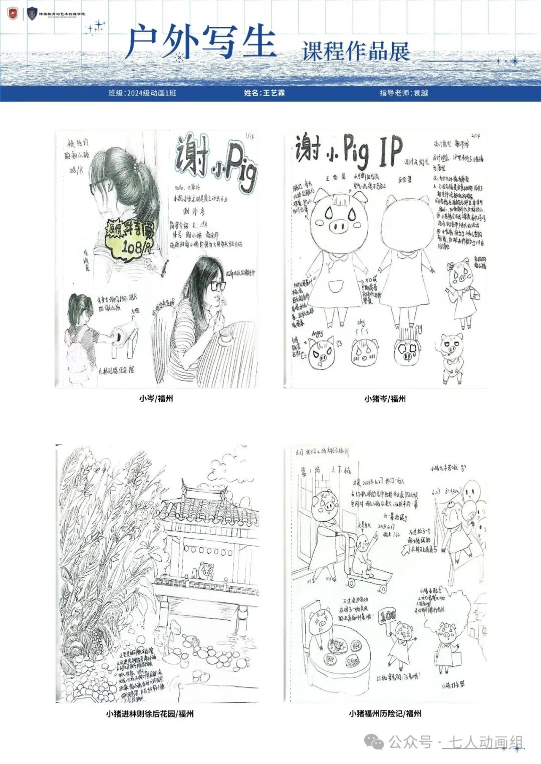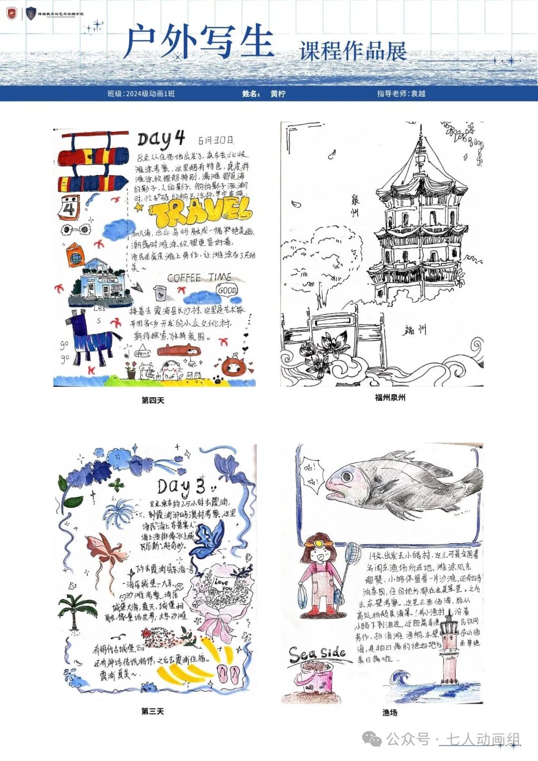 本次户外写生课地点为福州、宁德、泉州。人数:动画专业学生59人,老师2人。这是一次很有意义的写生活动,该门课程让学生走出教室,在户外提升了观察力和绘画技巧,锻炼了应变与创造力。学生作品整体水平显著提高,展现独特视角与创新手法,还拓展了文化视野。同时也拉近了老师与学生的距离,外出写生不仅要做学生的专业老师,还要做学生的生活老师;学生拉近了和专业的距离,强化专业基础能力培养。