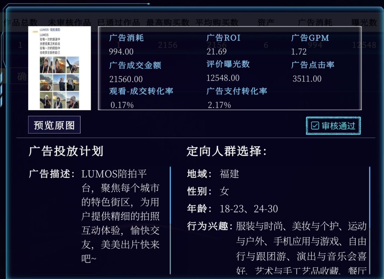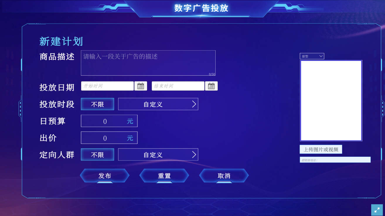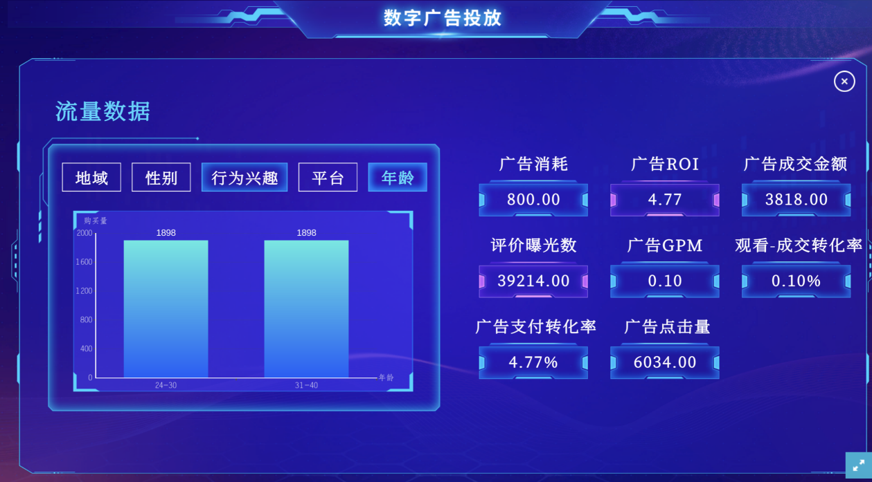 本课程从采用虚拟仿真教学的授课方式,引入了“广告虚拟仿真平台”,通过与厦门风云科技股份有限公司进行合作研究设计,完成了虚拟仿真技术平台的搭建,可以模拟信息流广告投放的过程和结果,并对数据进行相关分析。