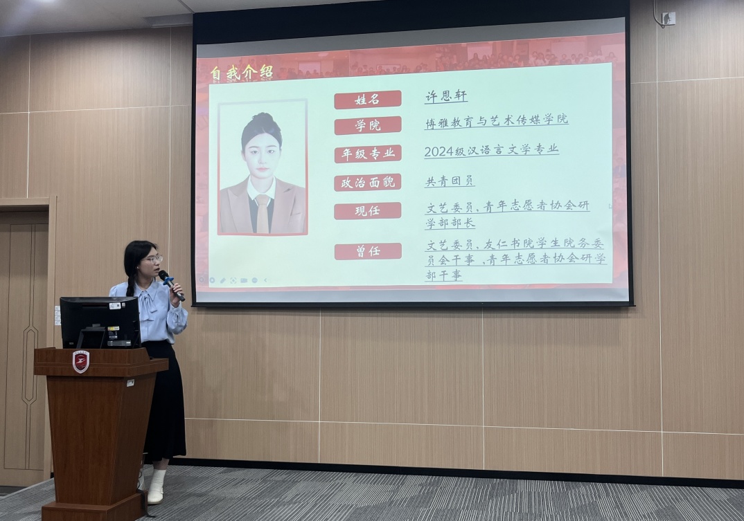 答辩过程中,每位候选人通过8-10分钟的PPT展示,全面呈现了其在学业成绩、社会实践、志愿服务、科研创新、文艺体育等多方面的突出表现与成长历程。