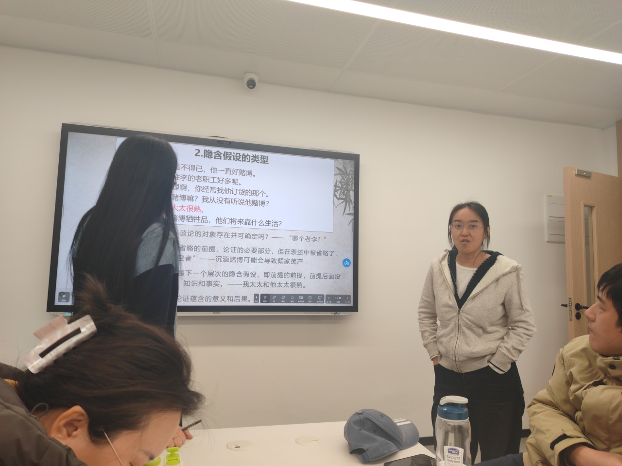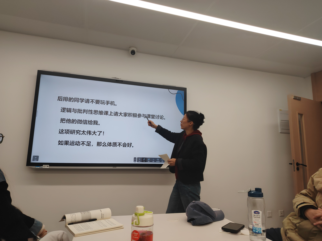 会议伊始,课程组主任瞿丽闵老师首先对本学期的总体教学运行情况进行了全面回顾与总结。报告指出,本学期课程组面向2025级1300余名学生开设逻辑与批判性思维课程,在教学目标达成、教学内容更新、学生反馈等方面均取得了稳步进展。尤其是在应对多元化教学挑战、运用新型教学工具辅助教学方面,教师们展现了高度的适应性与创新性,在本科教学审核性评估中得到听课专家的鼓励与肯定。会议通过数据分析与学生评价反馈,客观评估了教学成效,并着重探讨了在教学过程中遇到的共性难点问题,为后续改进提供了明确方向。