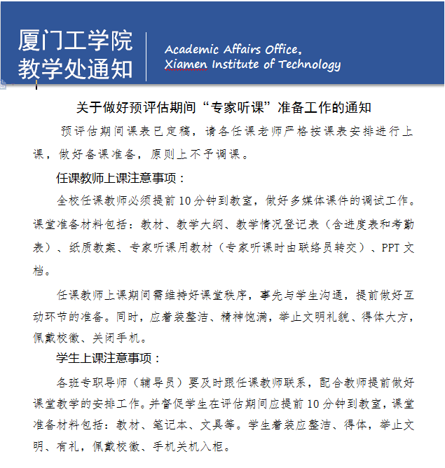 关于做好预评估期间“专家听课”准备工作的通知