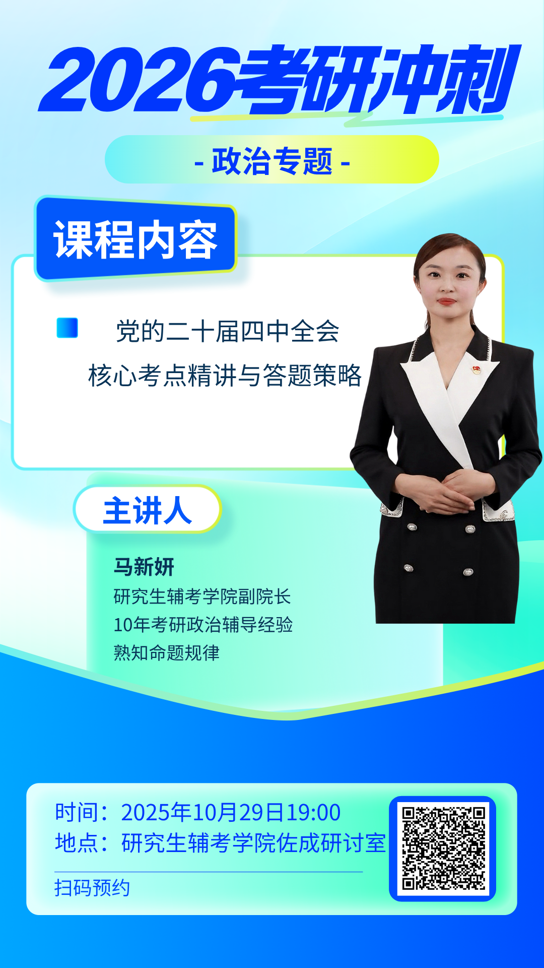 对于考研的同学们来说,政治科目是至关重要的一环。而党的二十届四中全会的相关内容更是考研政治冲刺阶段的重点。今晚19点,研究生辅考学院带同学们一起走进这个重要的专题。