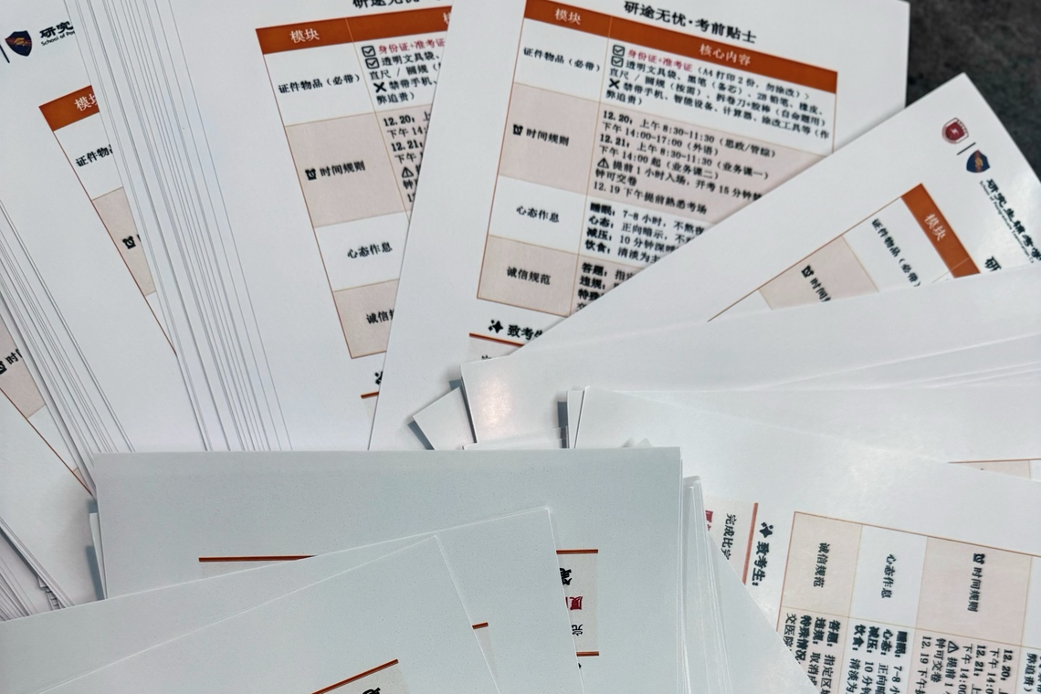 此次发放的考前小贴士更是学院辅考团队的“用心之作”,内容涵盖了考试必备证件物品清单、考试时间规则、心态作息调整、诚信考试规范等关键信息,字里行间都凝聚着学院对学子们的细致关怀。