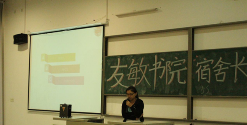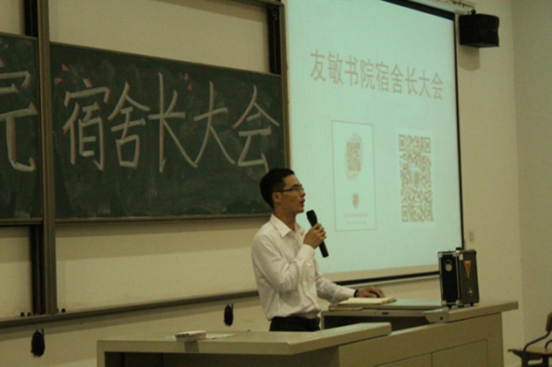 友敏书院宿舍长大会11月8日下午17:00在厚德大厦阶梯教室110召开,出席本次会议的有:友敏书院院务主任李文老师、主任助理卫群老师以及友敏书院全体思政辅导员、社区辅导员。本次宿舍长会议主要结合书院实际向同学们传达了宿舍建设与宿舍管理的相关规定、星级宿舍的评比规定、宿舍安全管理规定、社区文化建设的整体思路、最美宿舍的活动安排。会上,李文主任发表就社区管理工作发表了重要讲话,他从书院实际出发,提出了改善社区管理的若干具有方向性和针对性的新举措。主任助理卫群老师通过ppt生动形象地介绍了社区管理的日常安排;同时,她强调社区建设离不开学生组织的密切配合,只有将学生的自我管理发挥好,才能更好地建立社区的良好秩序。