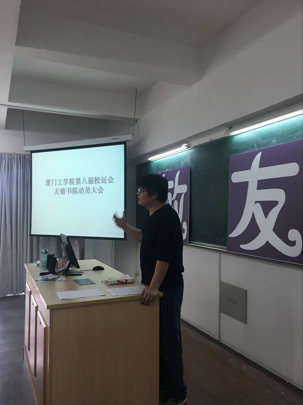 为积极响应学院第八届校运会的号召,友敏书院于11月24日12:30分在正心210教室召开运动会动员大会。参加本次动员大会的有:友敏书院院务主任助理卫群老师、商学一队负责老师王欣老师和陈志耀老师、商学二队负责老师牛国慧老师和陈南泉老师。动员大会由王欣老师主持召开。动员大会向同学们传达了书院对同学们一个多月以来的辛苦训练的感谢,希望同学们充分做好赛前的准备工作、注意比赛安全,也希望各位参赛的友敏运动健儿们在本次校运会中赛出风格、赛出水平、勇创佳绩。