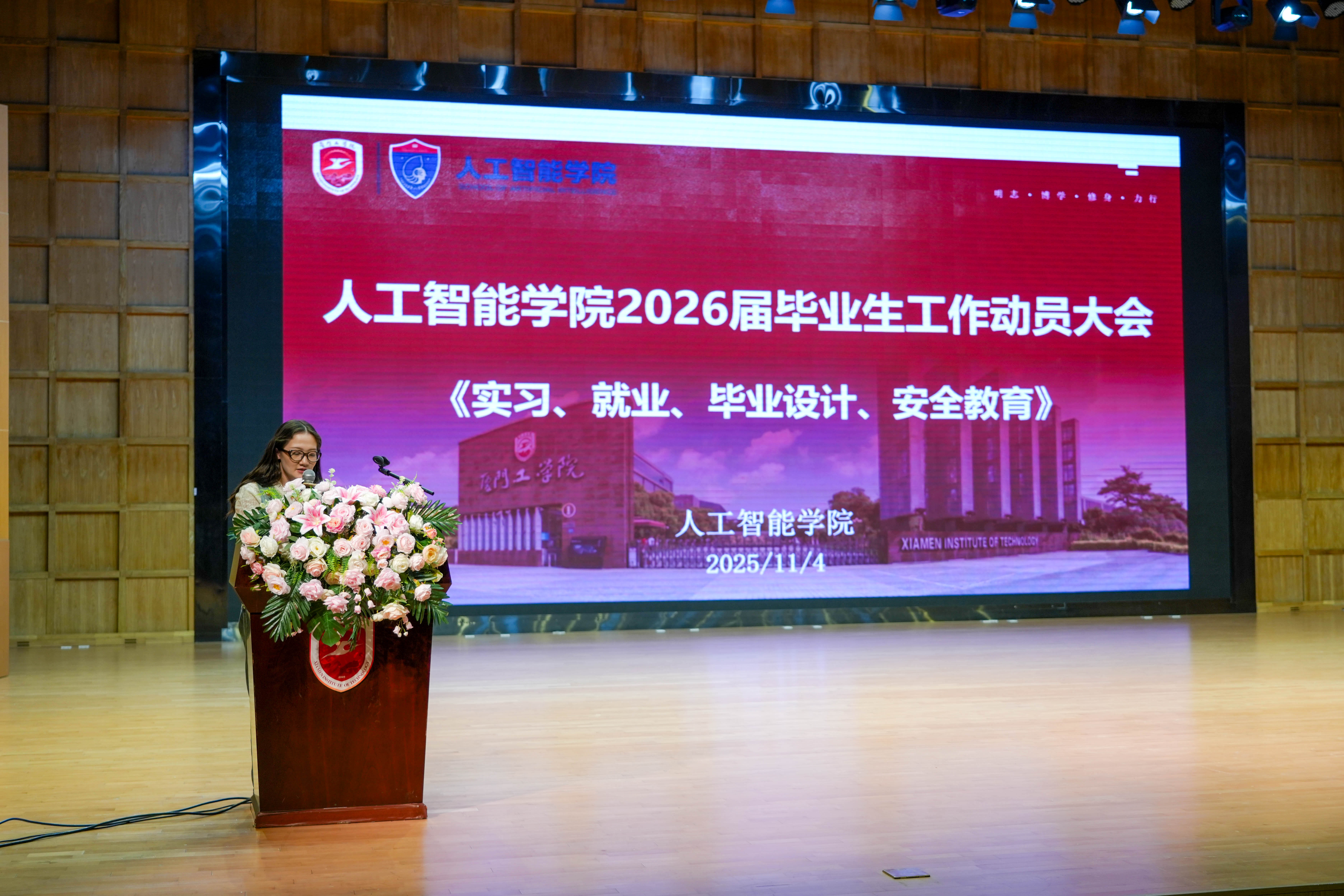 为落实并保障2026届毕业生各项工作有序推进,学院于2025年11月4日召开2026届毕业生工作动员大会。学院党委书记、执行院长谢志春,学术副院长王林,党委副书记、行政副院长郑小聪,福建合能睿创数字科技有限公司总经理郑美、杨继发老师,教培中心陈敏,毕业班导师、辅导员及全体2026届毕业生参会。