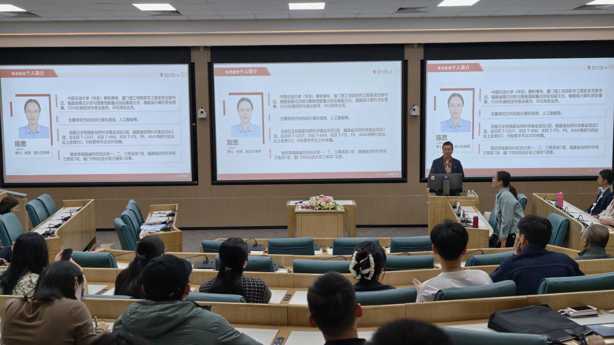12月18日下午,人工智能学院邀请厦门理工学院陈思教授在合一报告厅开展《当人脸属性识别遇上现实世界:如何应对数据、偏见与效率的联合挑战?》专题学术讲座,本次讲座围绕复杂场景下人脸识别存在的现实制约、应对现实约束的完整技术体系以及成果总结与未来展望,为我院科研工作者拓宽学术视野、深化技术钻研注入动力。