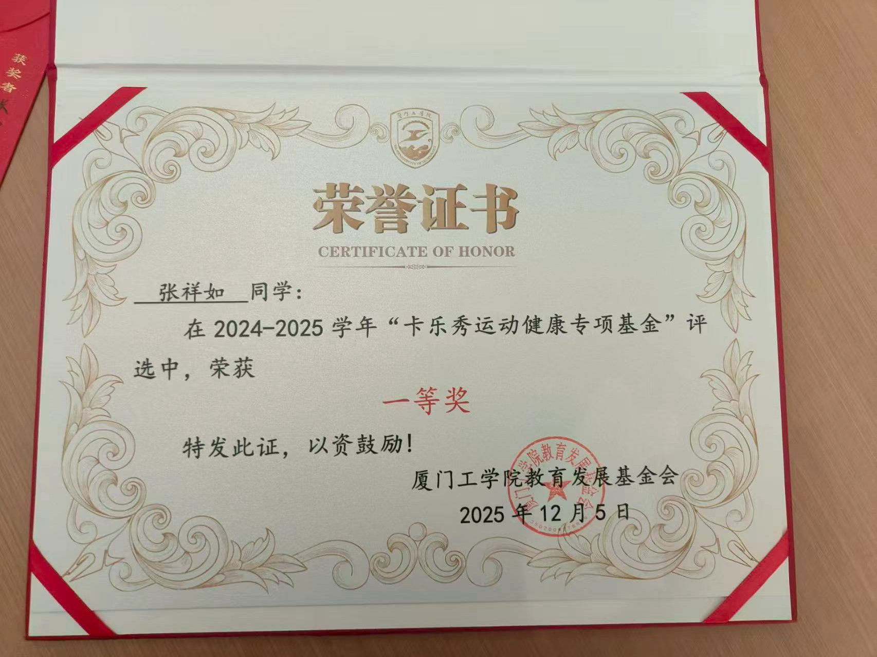 榜样力量,照我前行 | 厦门工学院2024-2025学年“卡乐秀运动健康专项基金“获奖者———张祥如