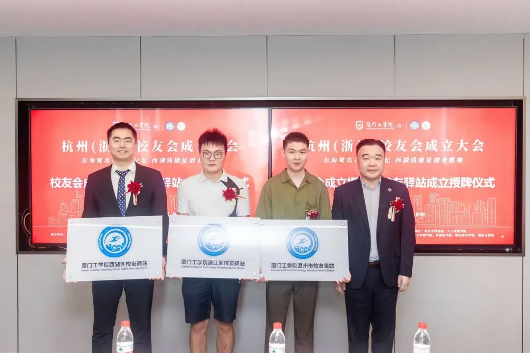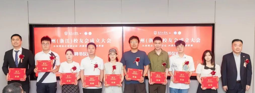 李雄虎副董事长、执行校长、校友总会会长为杭州(浙江)校友会理事会成员颁发聘书,并与杭州(浙江)校友会叶明淯会长共同为厦门工学院杭州(浙江)校友会揭牌,为校友驿站授牌。