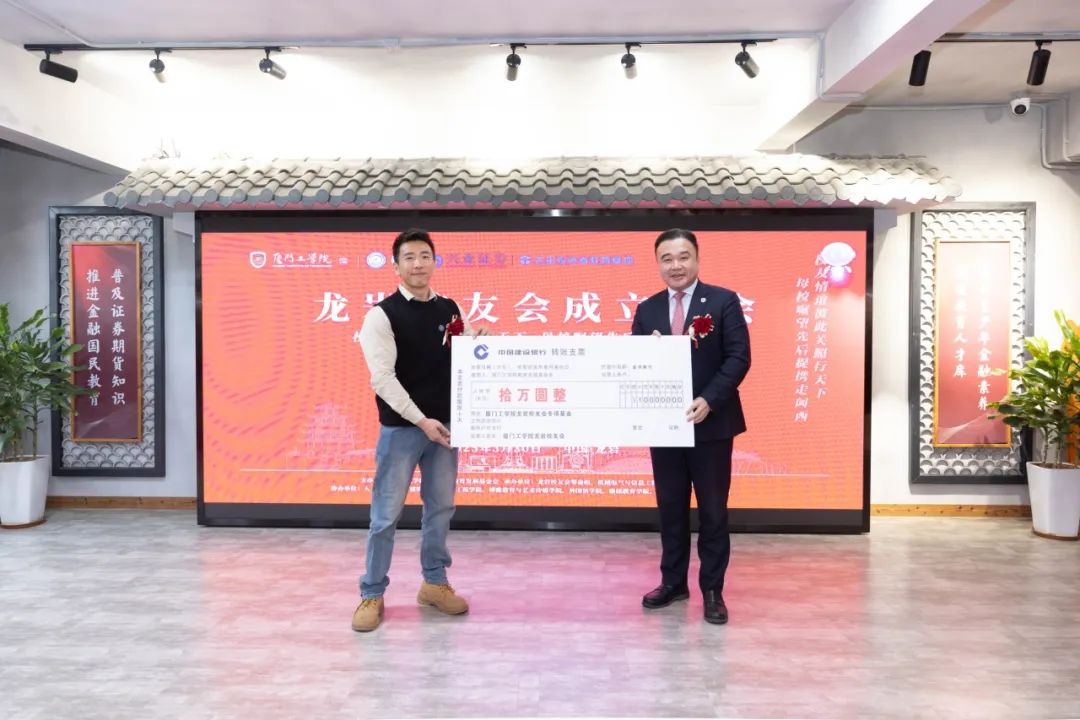 龙岩校友会向学校教育发展基金会捐赠现金,用于奖励厦门工学院在读优秀龙岩籍学生。
