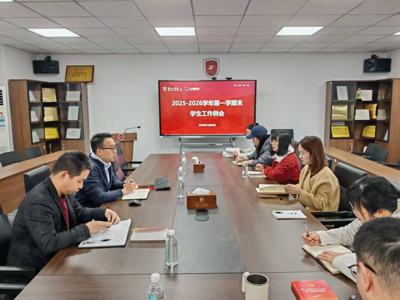 1月20日,人工智能学院在正心大厦201会议室召开2025-2026学年第一学期末学生工作例会,复盘本学期工作,部署期末、寒假及开学初重点任务。会议由学院行政副院长郑小聪主持,办公室副主任苏向荣及全体辅导员参会。