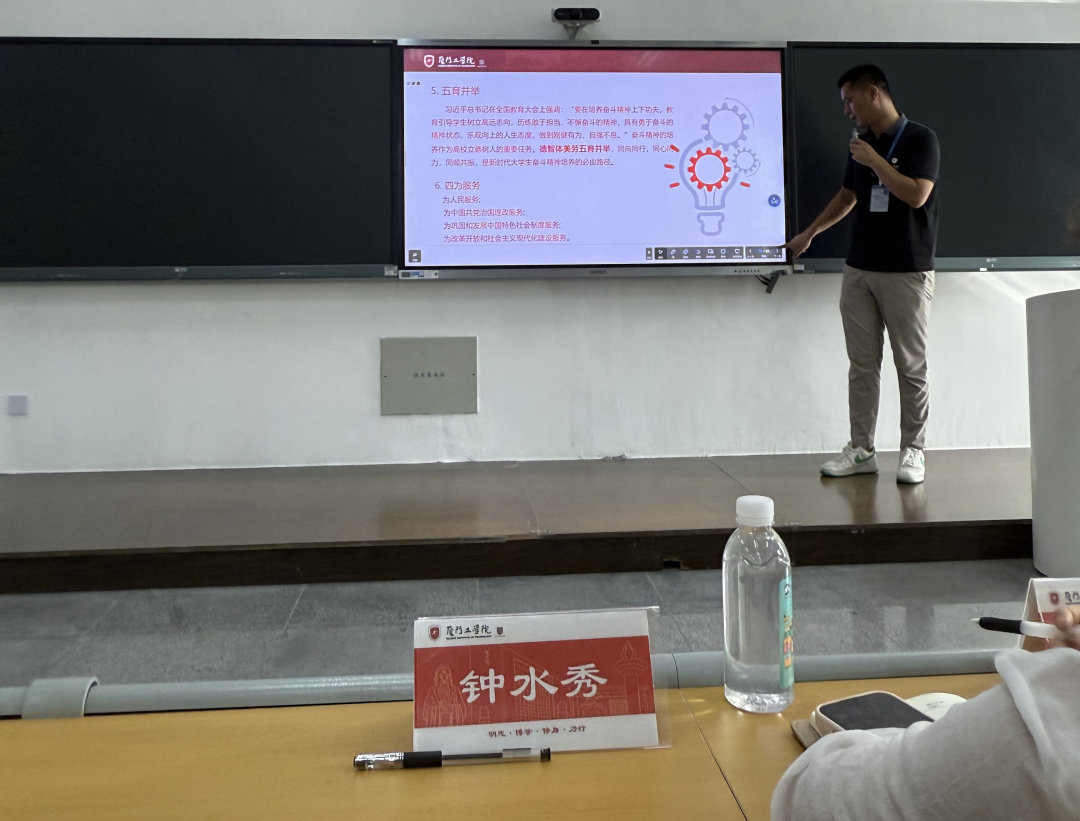 此外,李亚威老师系统介绍了学校的办学愿景——“百年树人,百年名校”,明确将“地方性、应用型”作为办学定位,坚持“立德树人、以文化人”的教育理念。他以“明志、博学、修身、力行”的校训为引领,持续营造“人人心中有质量”的校园文化氛围。