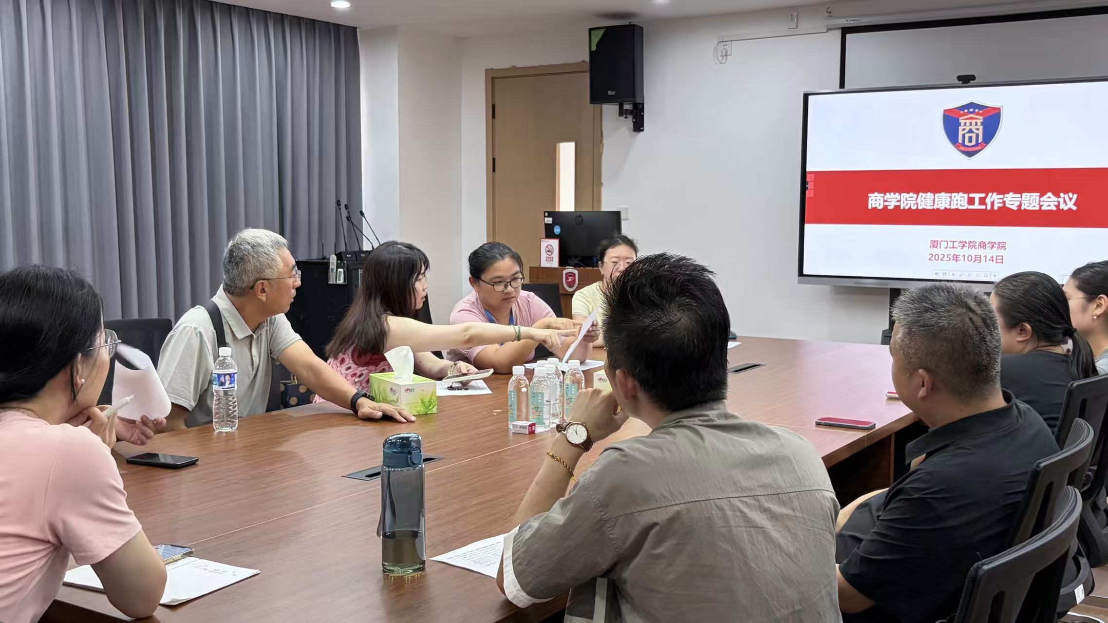 为有效推进校园健康跑工作,激发学生参与健康跑的积极性,2025年10月14日,厦门工学院商学院班级导师团队齐聚一堂,召开健康跑工作专题会议,深度剖析学生对健康跑的抵触情绪根源,探讨创新工作方法,有效提升学生对健康跑的积极性。
