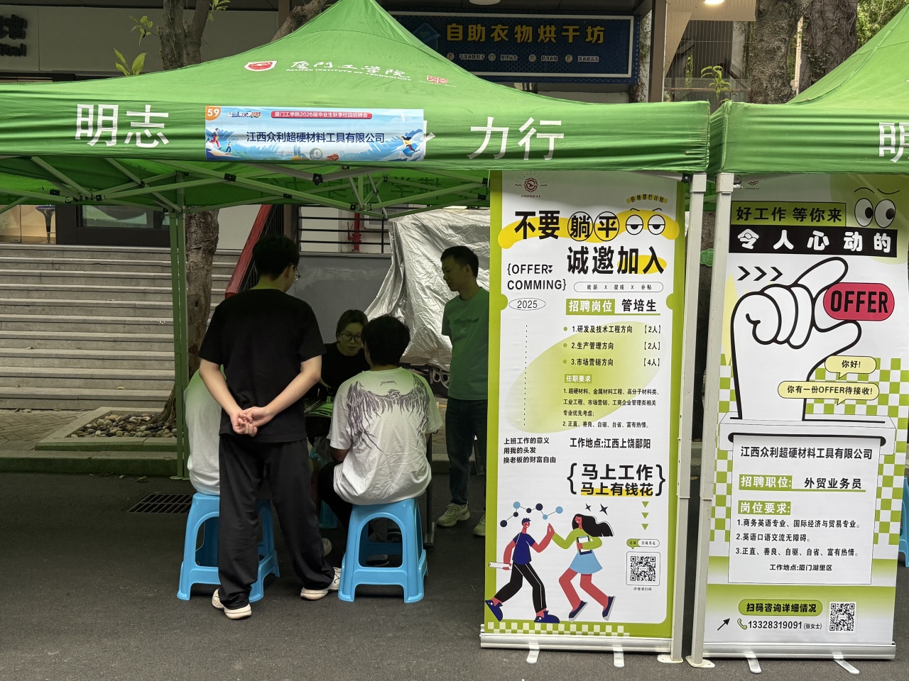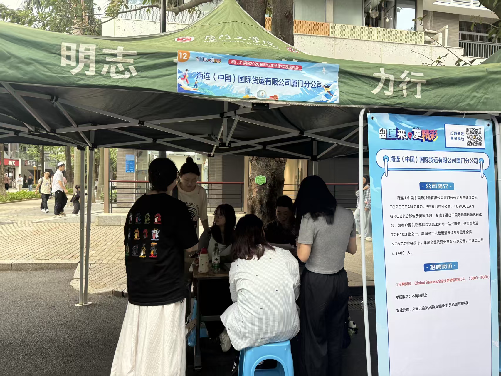 本次招聘会现场设置了多个企业展位,汇聚了众多厦门本地企业,覆盖物流货运、科技服务、超硬材料工具等领域。值得一提的是,我院优秀校友李力先生创办的“江西众利超硬材料工具有限公司”也受邀返校,为国际经济与贸易、商务英语等商科专业毕业生量身提供了多个适配岗位。它与海连(中国)国际货物有限公司厦门分公司、厦门奇迹山科技有限公司等多家单位共同参会,为学子们构建了涵盖多领域的丰富岗位资源平台。
