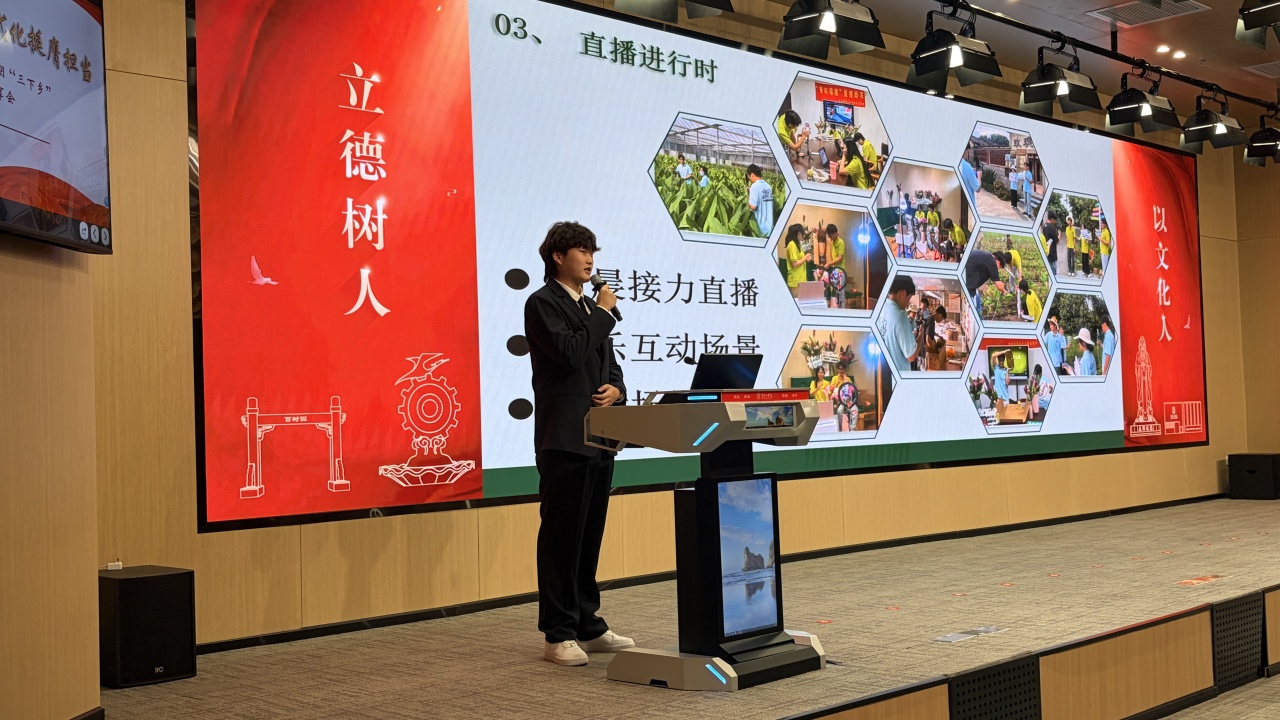厦门工学院商学院“商鹭绿芽”社会实践队队长张清源,带领大家重温了那段奔赴漳州长泰的意义非凡的“三下乡”志愿之旅。“我们奔赴漳州长泰的秀美村落,恰逢玫瑰农庄姜荷花盛放,也盼着以青春之力,与这片土地共绘振兴图景。”
