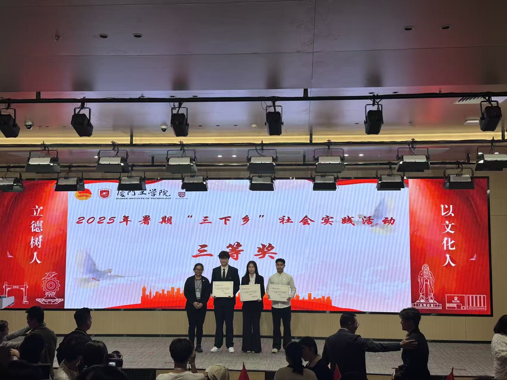 在刚刚结束的“青春为中国式现代化挺膺担当”----厦门工学院2025年暑期“三下乡”社会实践分享会中,我院“商鹭绿芽”实践队表现卓越,斩获三项荣誉: