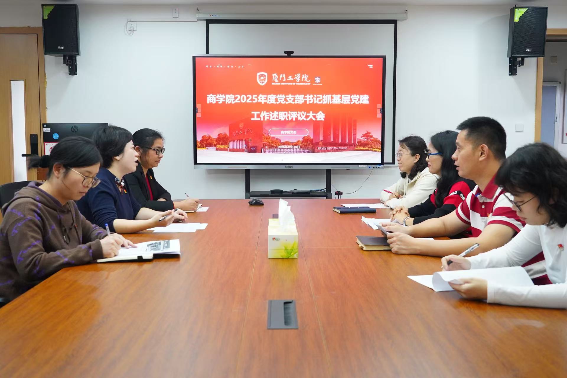 为深入学习贯彻习近平新时代中国特色社会主义思想,全面落实新时代党的建设总要求,压实基层党建工作责任,提升党组织政治功能和组织功能,2025年12月19日,厦门工学院商学院党委召开2025年度党支部书记抓基层党建工作述职评议大会。学院党委书记柯晶莹、副书记卫群,教师党支部书记及全体学生党支部书记出席会议。