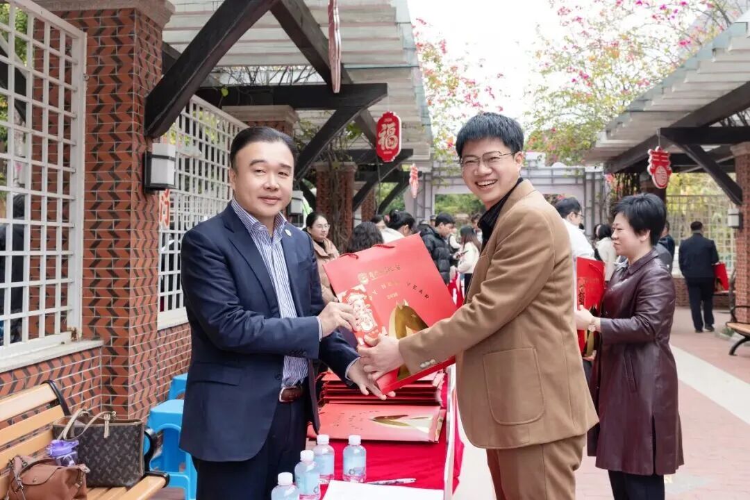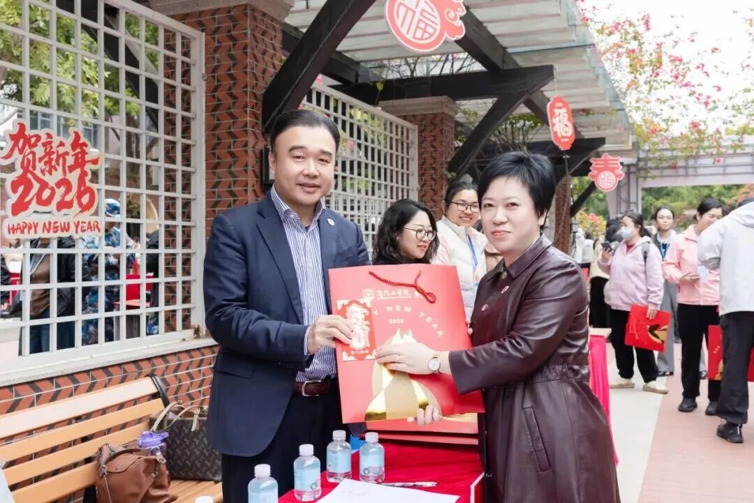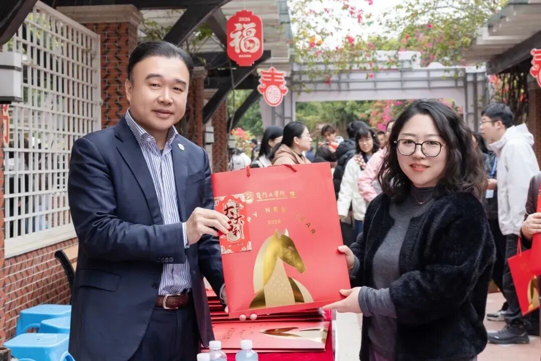2026年1月21日,厦门工学院2026年春节送祝福活动在卓尔园举行,商学院的慰问点暖意融融。校领导与学院领导班子共同为全院教职工送上新春礼包,致以诚挚的节日祝福与暖心关怀。