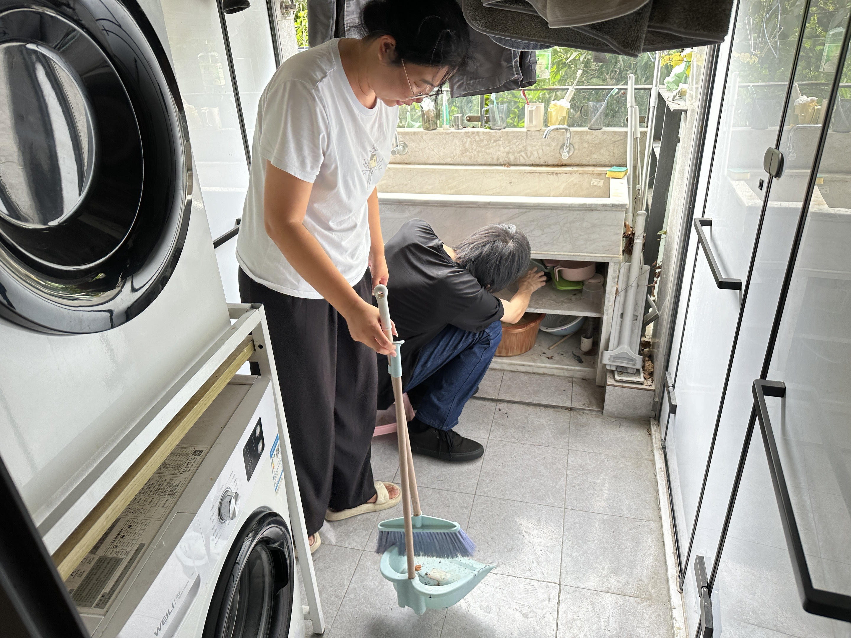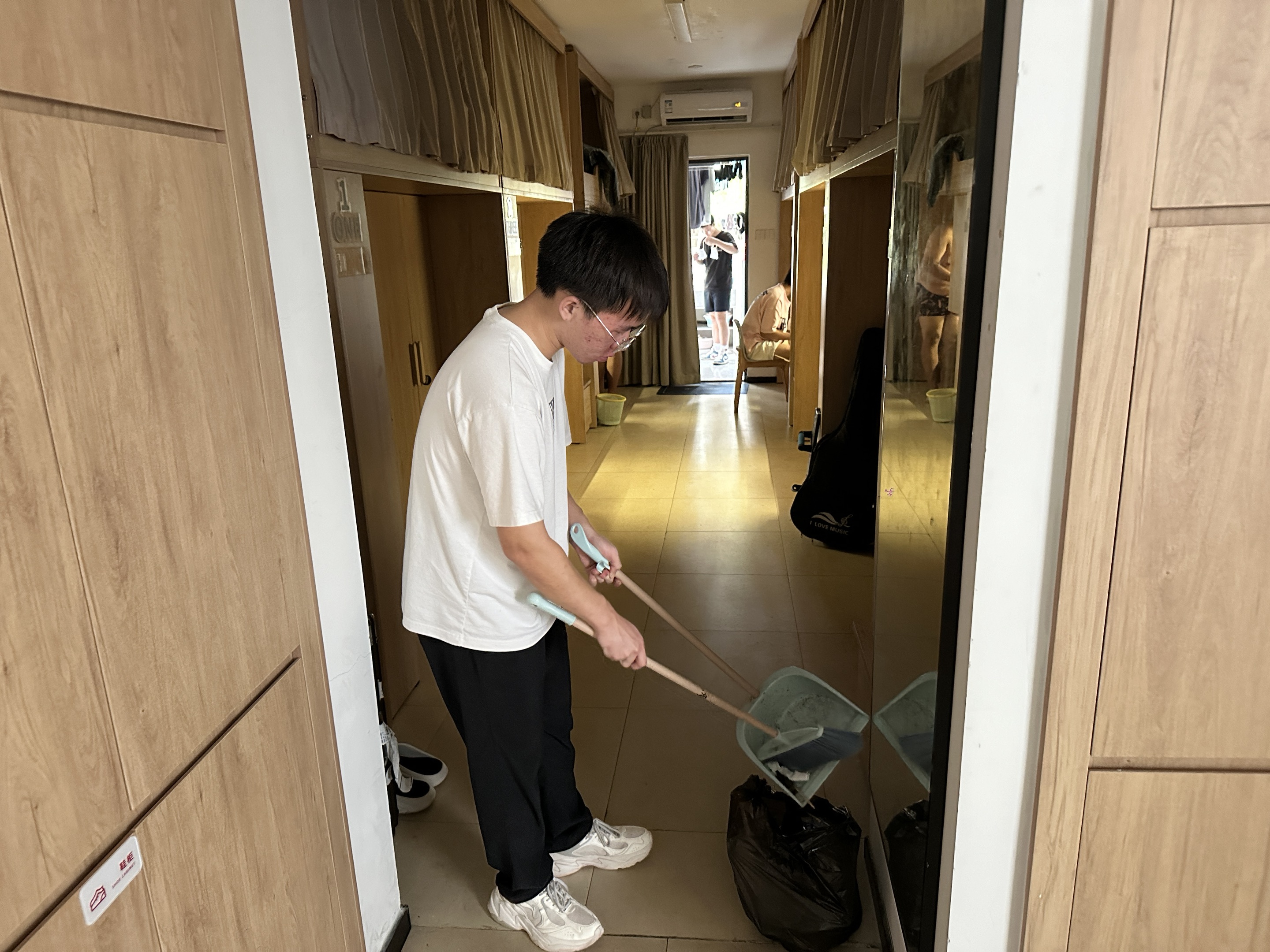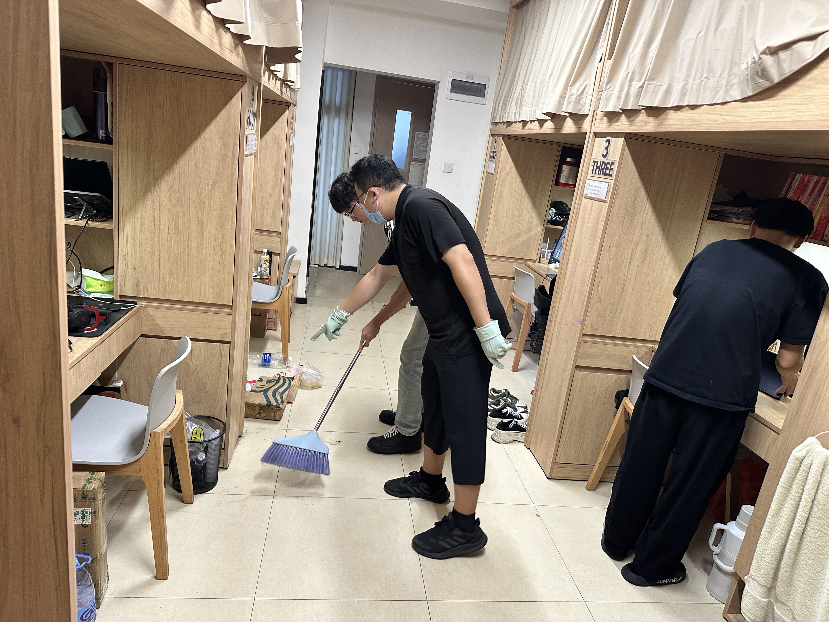 从阳台角落到柜顶深处,从洗漱台盆到卫生间边沿,那些平日里容易被忽略的角落,在大家的共同努力下焕然一新。汗水与笑声交织,不仅扫除了尘埃,更增进了师生情谊,传递出一份共同维护“家”的责任与担当。