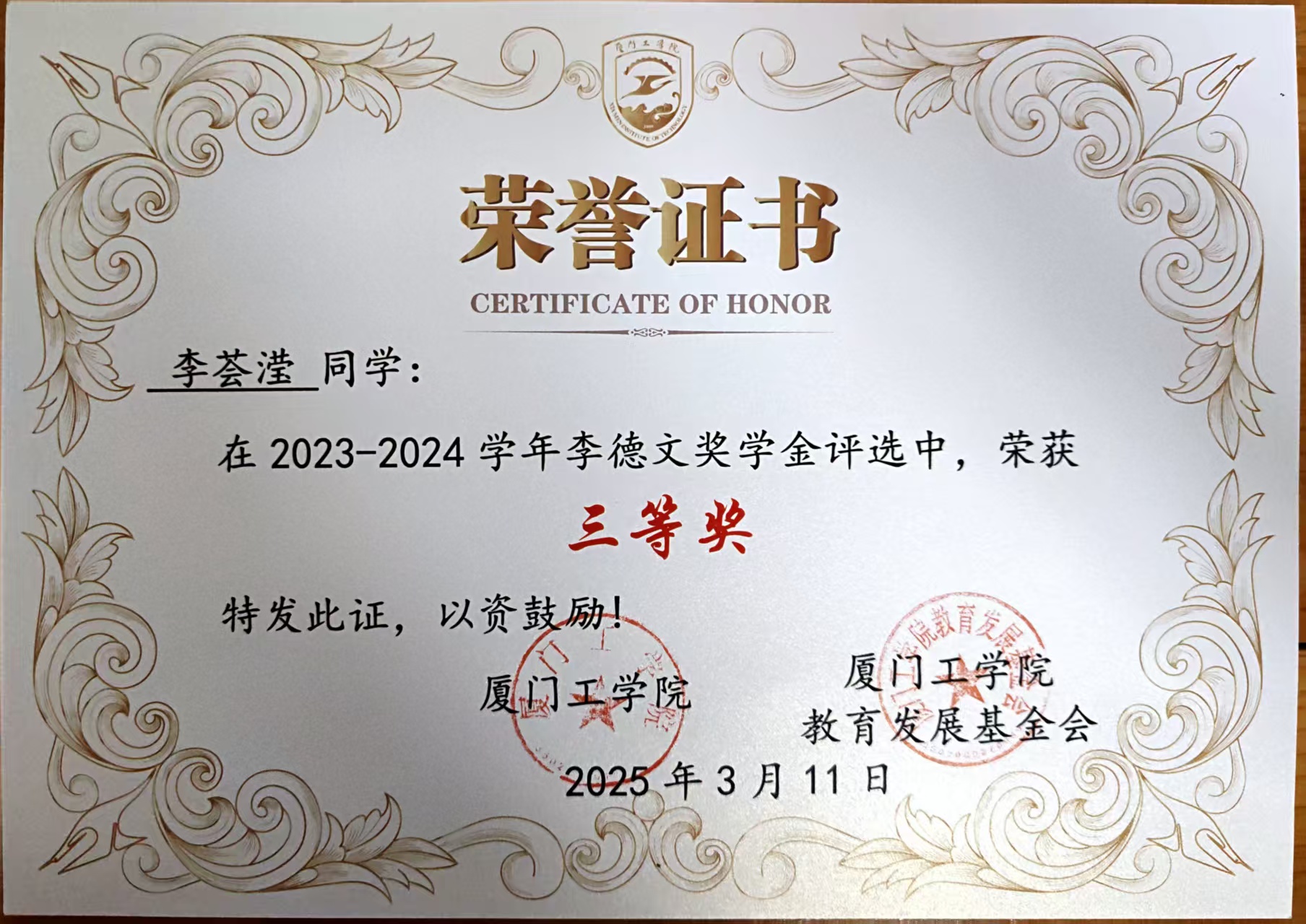 问题 3:李德文奖学金承载着鼓励学子成长的期许,这份荣誉对你而言,除了物质奖励之外,还有哪些特别的意义?