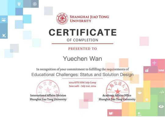 在视野拓展上,她跨界交流,博采众长。 她积极参与北京大学、上海交大、韩国汉阳大学等多所高校的优质暑期项目,不断拓宽认知边界。她用自己的行动证明,起点从不定义终点,人生的广度取决于如何扎根、如何向上。