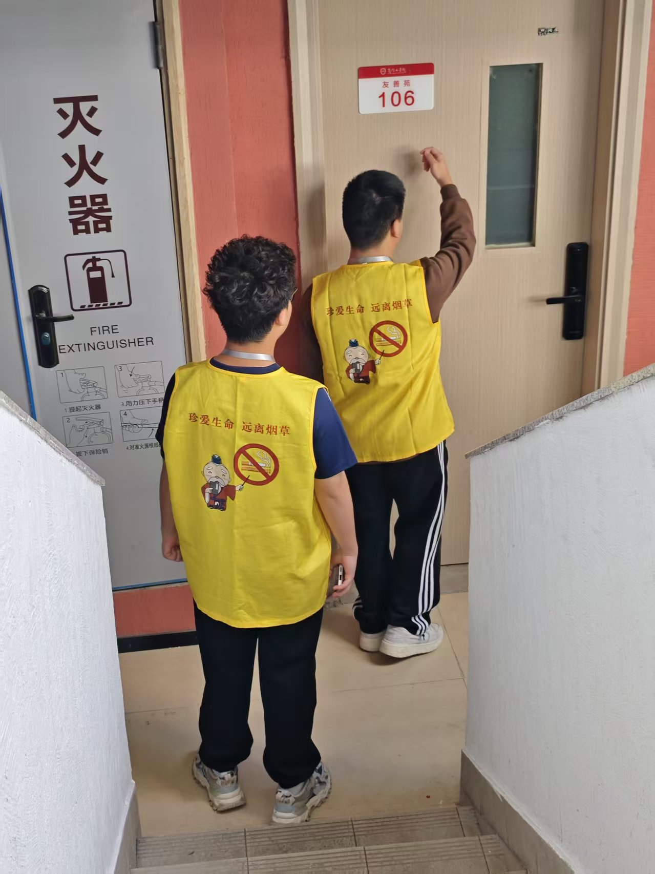 在安全检查方面,老师们仔细查看每一间宿舍的用电情况,重点关注插座使用是否规范、是否存在私拉乱接电线、违规电器使用等问题。与此同时,控烟检查作为本次新增重点工作同步展开。检查人员通过气味辨别、物品检查、痕迹观察等方式,排查宿舍内吸烟情况。