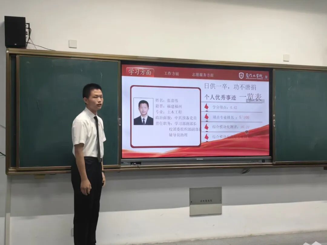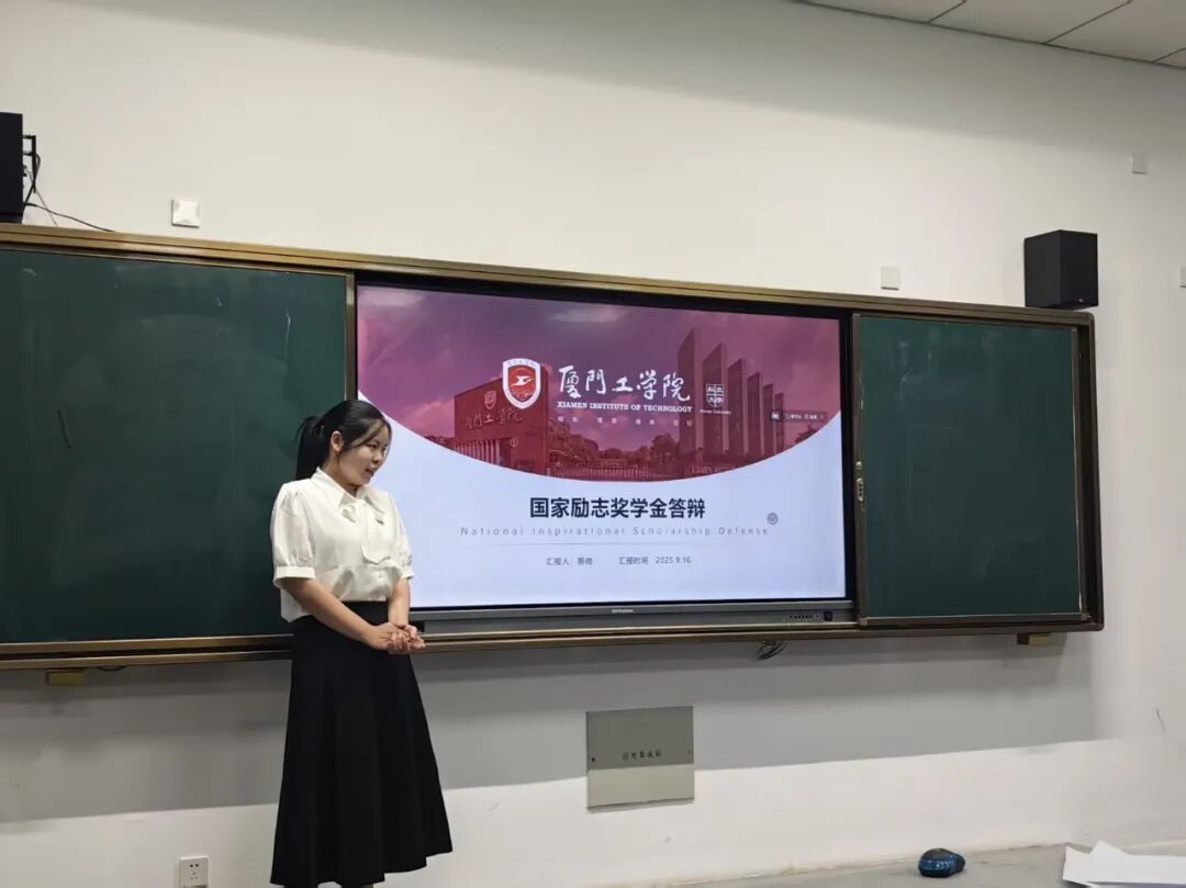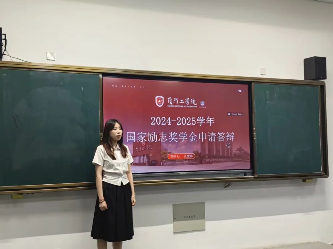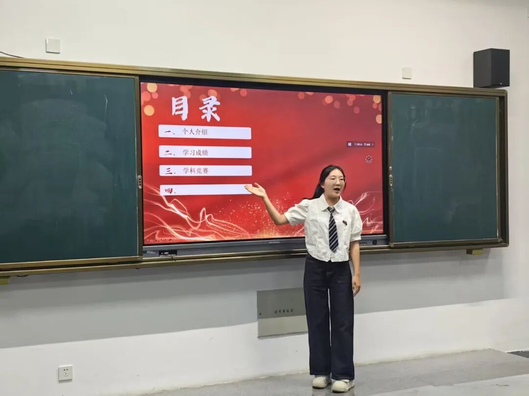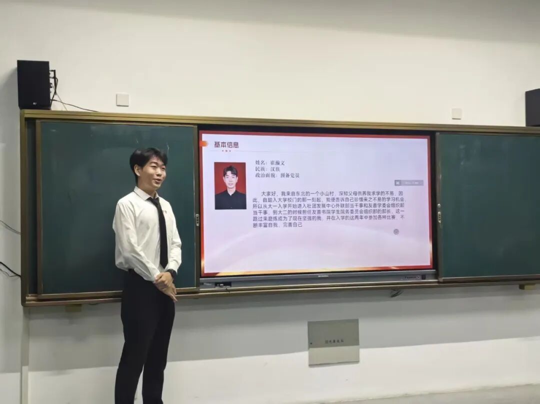 答辩现场人才济济,气氛热烈。今年我院共有34名候选学生参与本次答辩,他们依次登场。他们以PPT为辅助,从学习、实践、竞赛、志愿服务等多个角度,系统呈现了自己的综合素质与突出成果,全面汇报了个人的成长与收获,展现了新时代青年的卓越风采。
