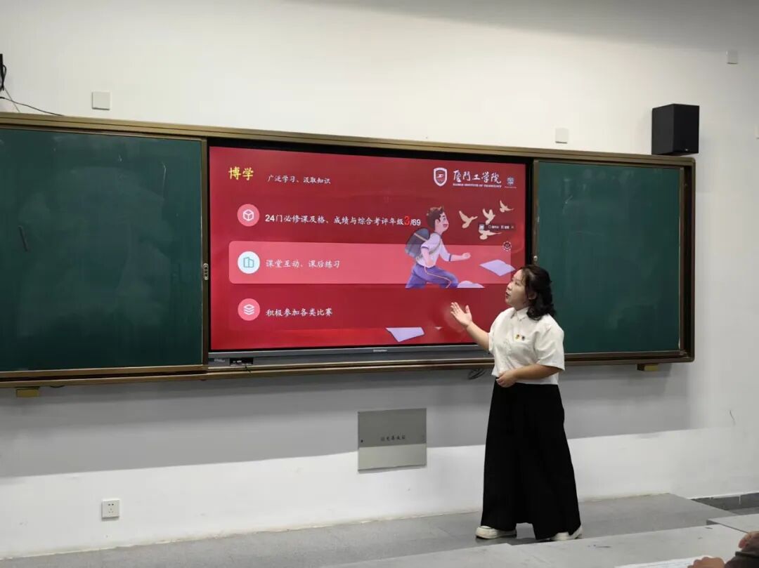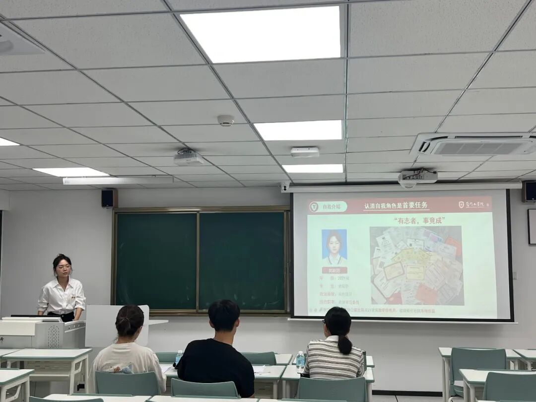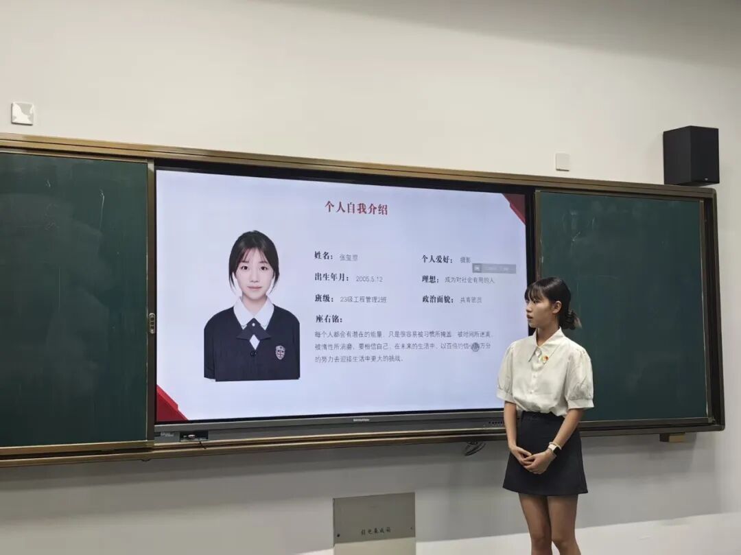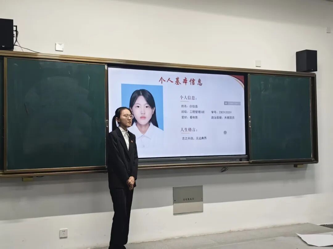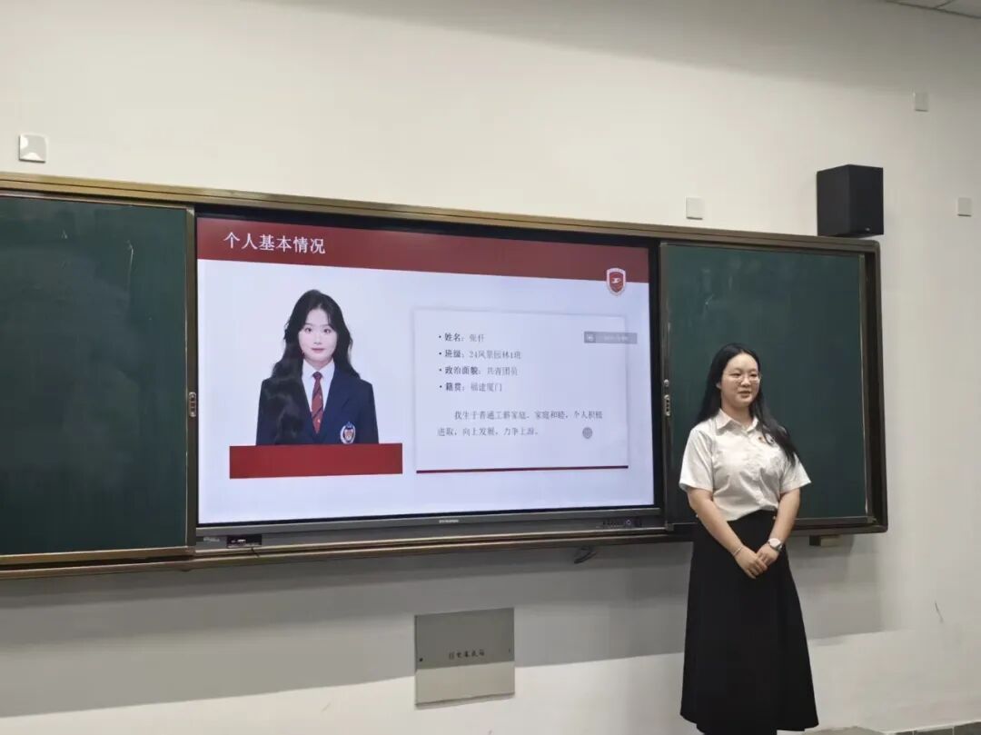 答辩现场人才济济,气氛热烈。今年我院共有34名候选学生参与本次答辩,他们依次登场。他们以PPT为辅助,从学习、实践、竞赛、志愿服务等多个角度,系统呈现了自己的综合素质与突出成果,全面汇报了个人的成长与收获,展现了新时代青年的卓越风采。