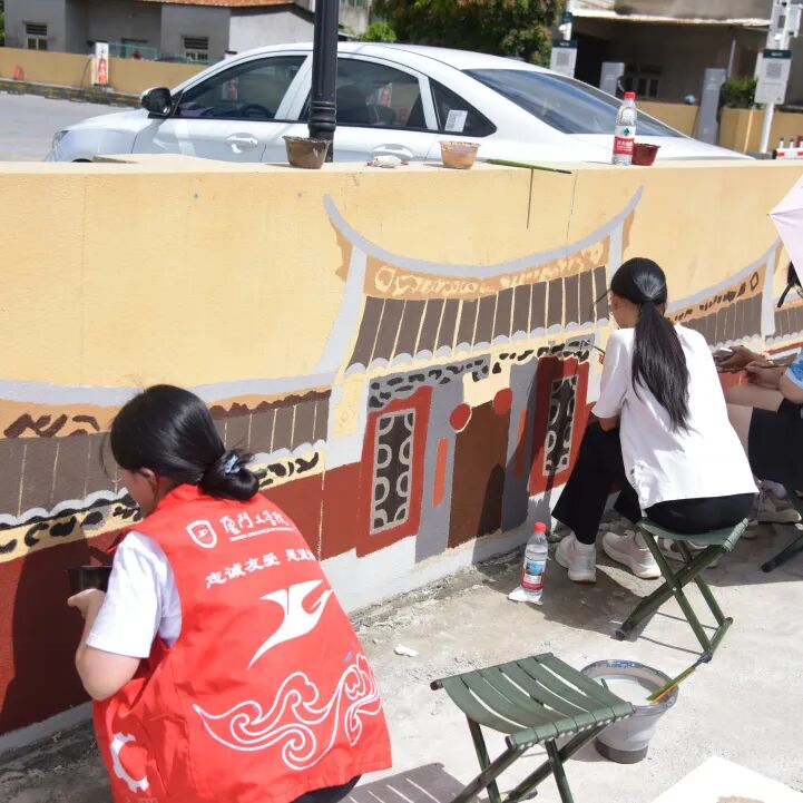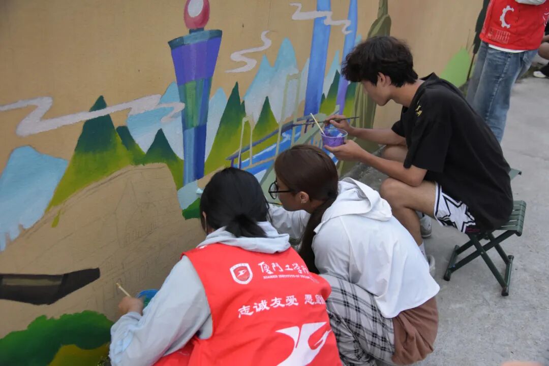 厦门工学院建筑科学与土木工程学院“高校帮扶东宅村”——红砖筑南梁社会实践队,用饱满充沛的热情、专业熟练的技能,历时2天,累计志愿服务时长760小时,共绘制主题墙绘100多平方米,主题彩绘石墩17个充分展示了青年党员昂扬向上的精神风貌,凝聚青春合力,展现青春风采,为美丽乡村建设贡献青春力量,青春为中国式现代化挺膺担当!