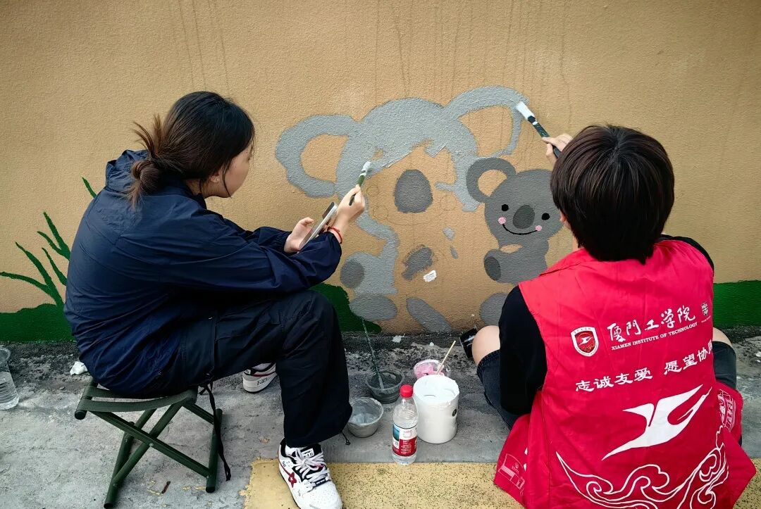 细致构图,耐心勾勒,用心调色,精心涂画。每一笔都倾注了我们的专注与期盼,让素净的墙面开满缤纷的想象——这一次,我们将厦门的故事搬进了孩子们的天地。