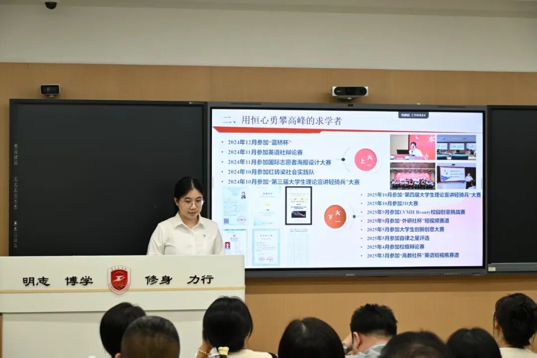 答辩现场群英荟萃,气氛热烈。本年度共有26名优秀学子参与角逐。他们依次登台,从思想觉悟、学业成绩、科研创新、社会实践等多个维度,全面而生动地展现了自身的综合素养与丰硕成果。