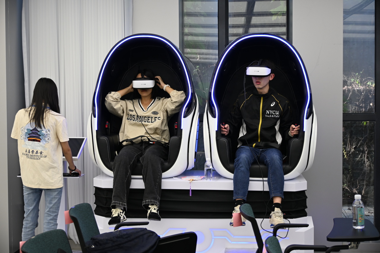 特别设置的VR体验环节,将现场气氛推向轻松的高潮。跑者们踊跃参与,在虚拟现实构建的沉浸场景中,亲身感受科技带来的新奇与乐趣。师生们在人机互动的奇妙过程中,共同畅想科技如何为未来赋能。