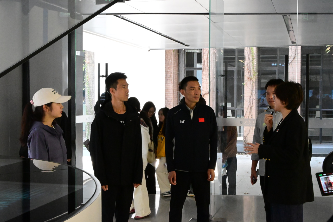 在早晨的阳光下,一场跨界探索在广联达产业学院生动展开。在学院李晓瑾执行院长的带领下,许王、徐冰洁、管油胜三位明星跑者依次走进智能建造科技展馆、机器人展示区与数字设计中心,沉浸体验VR安全模拟,聆听装配式建筑讲解,近距离感受建筑机器人、3D打印等前沿技术如何重塑行业未来。这场参观不仅展现了智能建造的生动图景与无限可能,也让体育精神与科技探索在育人实践中交相辉映,彰显“以体育人、科技赋能”的融合理念。展现了智能建造的生动图景与无限可能。